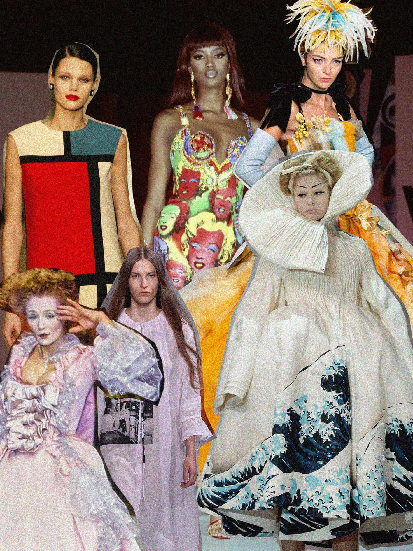 Yves Saint Laurent's SS02 haute couture / Fairchild Archive/Penske Media via Getty Images)Perhaps one of the most well-known examples of fashion and art directly colliding is Saint Laurent’s Mondrian. Singularly referencing Piet Mondrian’s geometric compositions, Saint Laurent translated the abstract paintings into jersey shift dresses. Here, Saint Laurent offered a garment that operates with the same visual logic as the artwork it references, by using 60s mod shapes to communicate a contemporary silhouette.