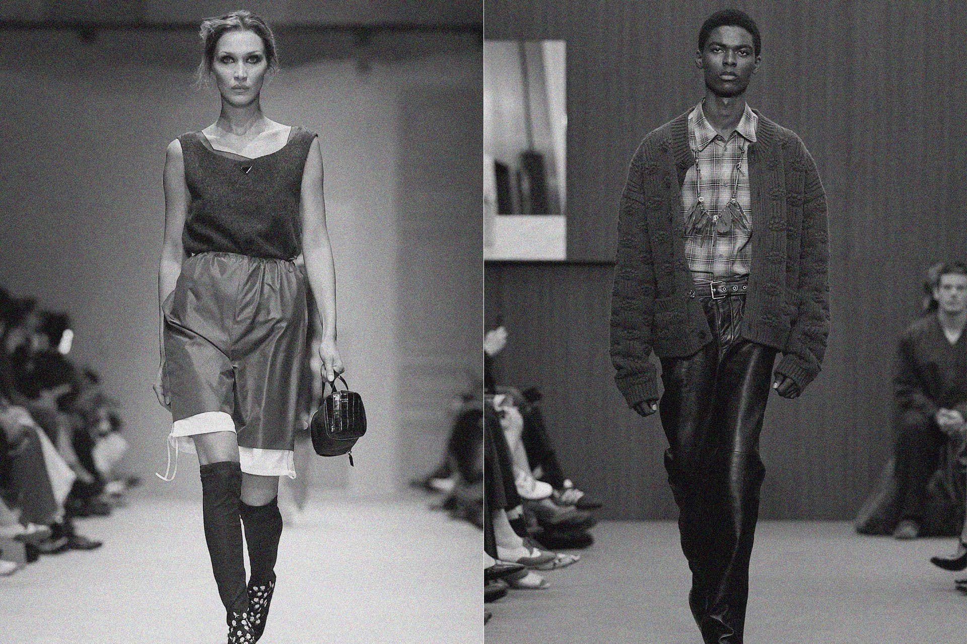 Launchmetrics/PradaOver at Prada yesterday, the tone was very much set when a very late Mark Zuckerberg and his wife settled into the front row, and, unsurprisingly, a surprising show followed. Most notably was Raf Simons and Miuccia Prada’s decision to cast only 15 models in the show, giving each girl four changes, where their hair and makeup became purposefully messier with each exit. Bella Hadid was part of this fun little party trick, drawing plenty of eyes as she seems to only pop up once or twice a season these days. The collection itself was Prada perfection as usual. Mrs. Prada is often thinking about how to reinterpret what the everyday wearer has in their wardrobe, and between the worn-in bomber jackets and crumpled poplin shirts and pencil skirts, it’s safe to say the design duo once again hit the nail on the head.