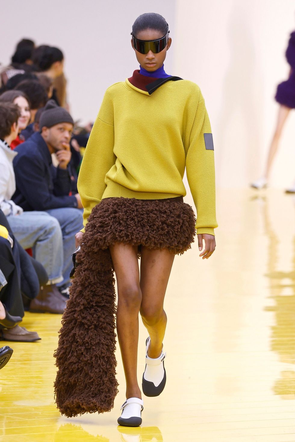 It was Loewe day today, and Jack McCollough and Lazaro Hernandez’s second collection for the Spanish house, which the Proenza Schouler design duo inherited from Jonathan Anderson. For Fall/Winter 2026, we saw moments of repetition from their debut. There were vibrant neoprene coats reminiscent of their polly-pocket dresses from last season, layered anoraks and punchy-hued blazers too. The duo increased their dialogue with proportion; coats featured inflated collars that acted like ultra-protective scarves, strapless dresses were draped, casually across the body and finished with fur necklines, voluminous textured mini skirts featured tail-like trains. I especially liked the accessories offering this season. There were square leather business bags that were left open and heeled water shoes. One great shoe was an update to the brands flat-soled tennis sneaker, now offered as a laceless version is suede and satin. It does still vaguely feel as though the boys are yet to truly hit their stride at Loewe, but in the meantime, there are plenty of wearable pieces I am enjoying.