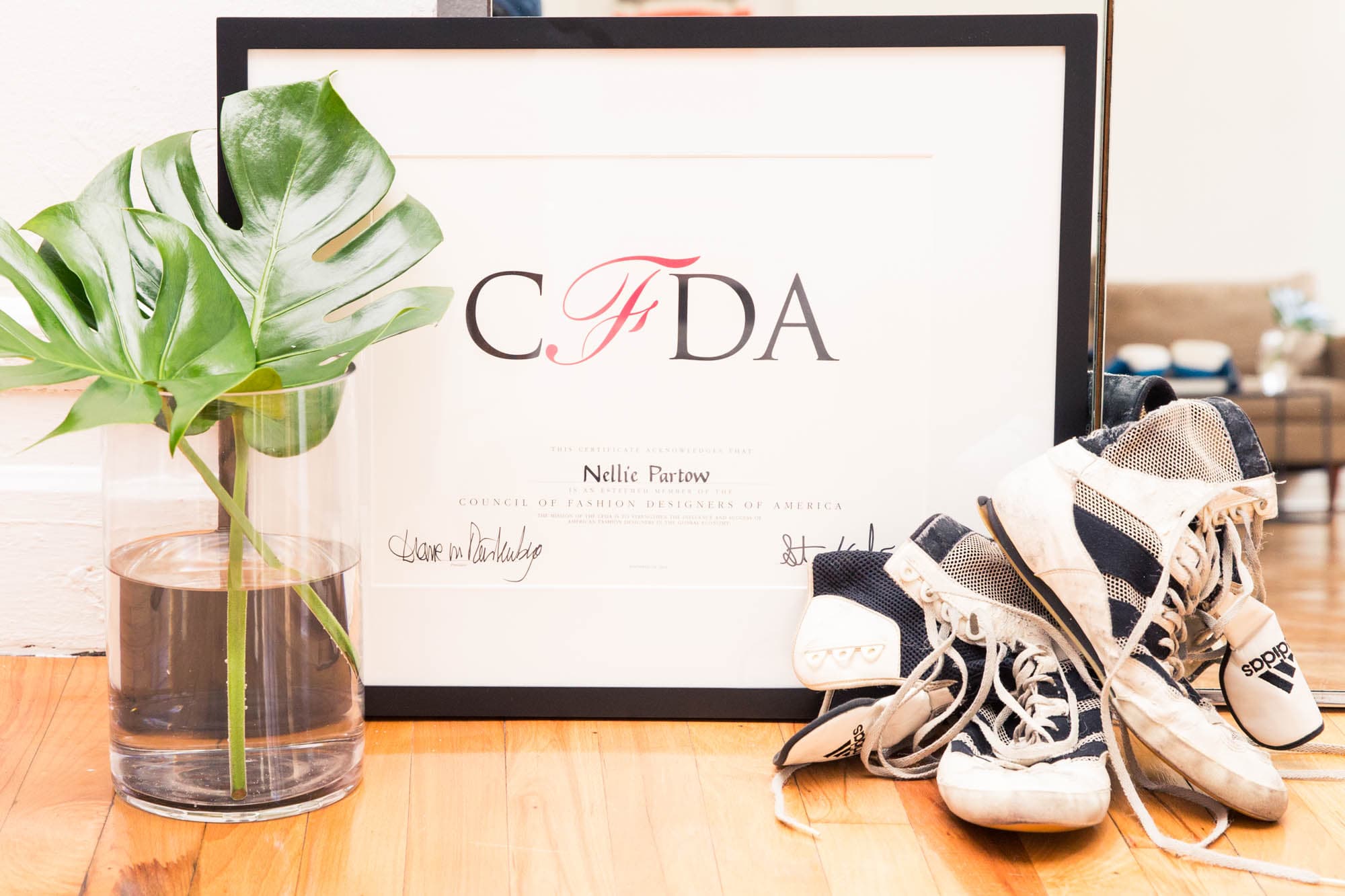 “I was a competitive boxer for years. I fought in Madison Square Garden. I was really young and usually female boxers have family members who were into it, but no one in my family was into it. I was 14 and I always loved sports, but I never found anything that I really loved and I hated going to the gym, so I walked into Team USA’s doors, not knowing what that meant. I thought it was just going to be a good workout, and the head trainer took me in and two months into it, he said, you have what it takes to fight. He took me to some live fights and I fell in love with it. I competed until I fought several times at Madison Square Gardens, which was the highlight. I’m a Golden Gloves Champion, which is the best of the amateurs. I was always designing—I would work all day at Calvin Klein and at night I would go to the boxing gym and train for 3-4 hours. I was training six days a week and fighting on the weekends. I won a few titles. I still train—I box 2-4 times a week to Mendez Boxing.”