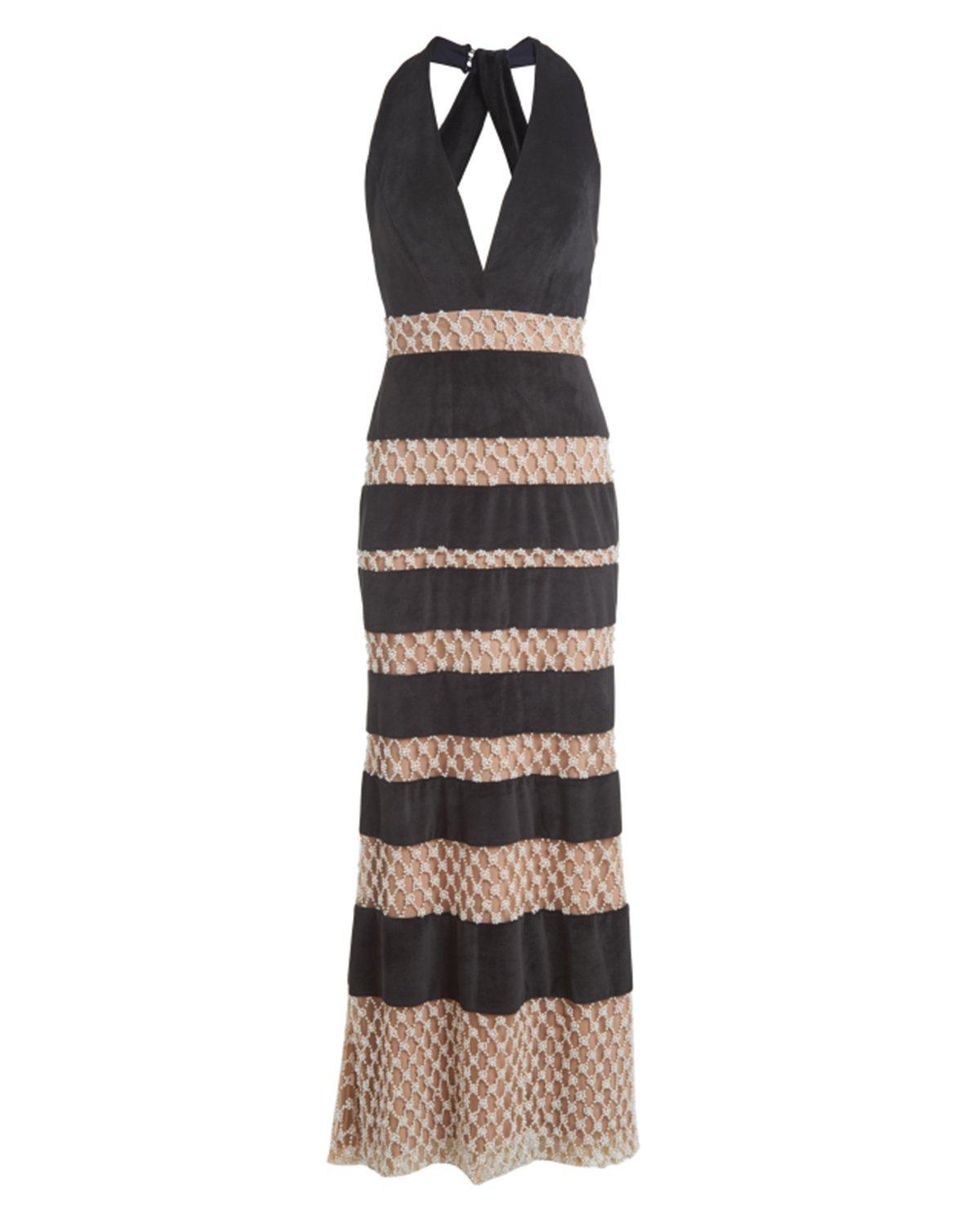 “This PatBo dress has everything: luxe velvet, pearl beading, and made-you-look nude panels. It's a holiday party home run. I picked up these tights in Italy when the temperatures unexpectedly dropped the day of my friend's wedding—they're the perfect cross between opaque and sheer. And I'm always cold.