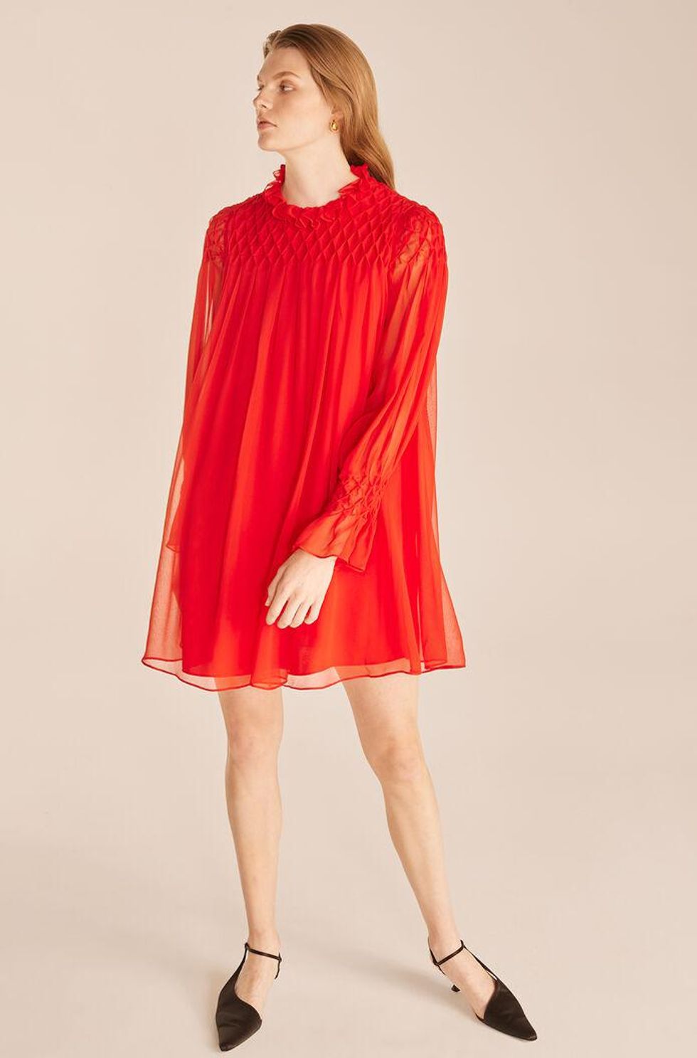 “That doesn’t mean I don’t like to go a little over-the-top. The holidays are a great excuse to bust out chiffon, lace, and oversize bows, like I am an extremely fancy child. If I am in the office all day and don’t have time to change for a party, I’ll wear a black silk top and high-waist black trousers, with a dramatic cat-eye and a giant red bow in my hair. If the party is black-tie or extra special, I’ll borrow or rent something spectacular and take on a different fashion persona for the night. No matter what, I pay very close attention to tailoring—the dress needs to do all the work! Markarian, PatBo, and Self-Portrait won’t let you take a bad photo, I promise.