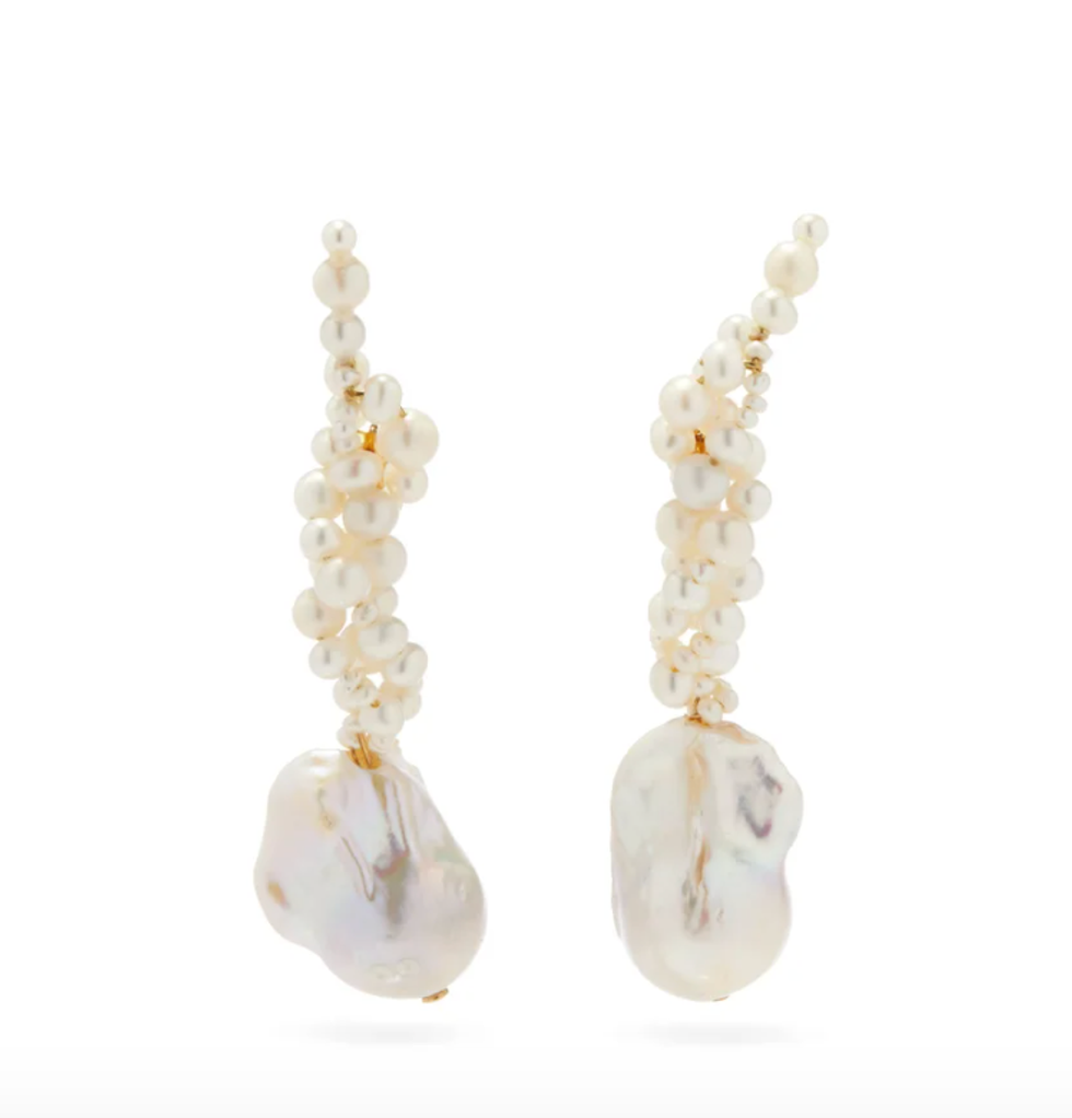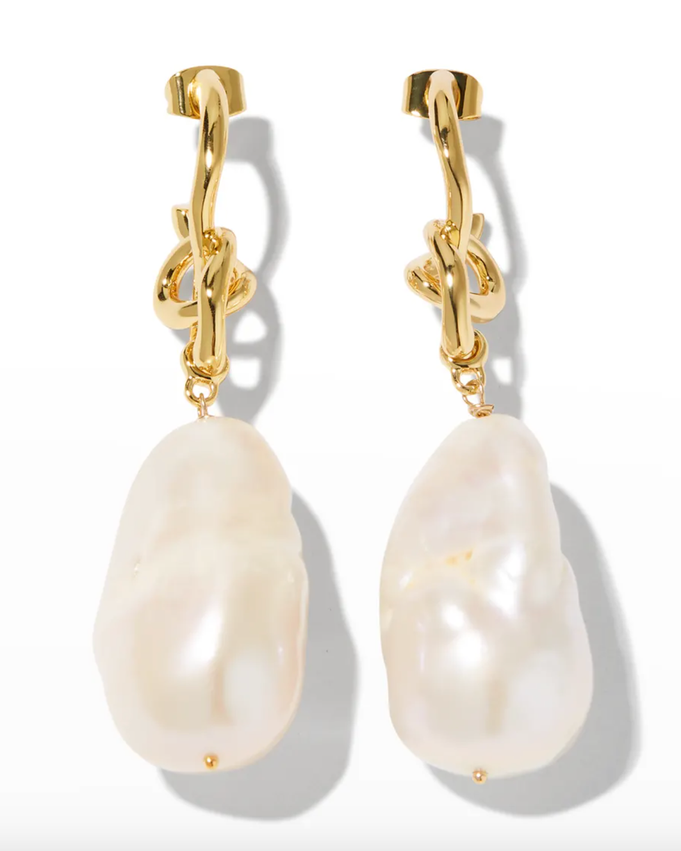 “Similarly, I rely heavily on a black cat-eye (I buy the kind with a stamp for a perfect flick each time) or a red lip—and never both at once—they go a long way to elevate even the most basic outfits. I keep jewelry simple, only layering a few pieces on top of my everyday set—right now I have these baroque pearl drops in heavy rotation because the way they frame the face is so flattering and you can never go wrong with pearls.