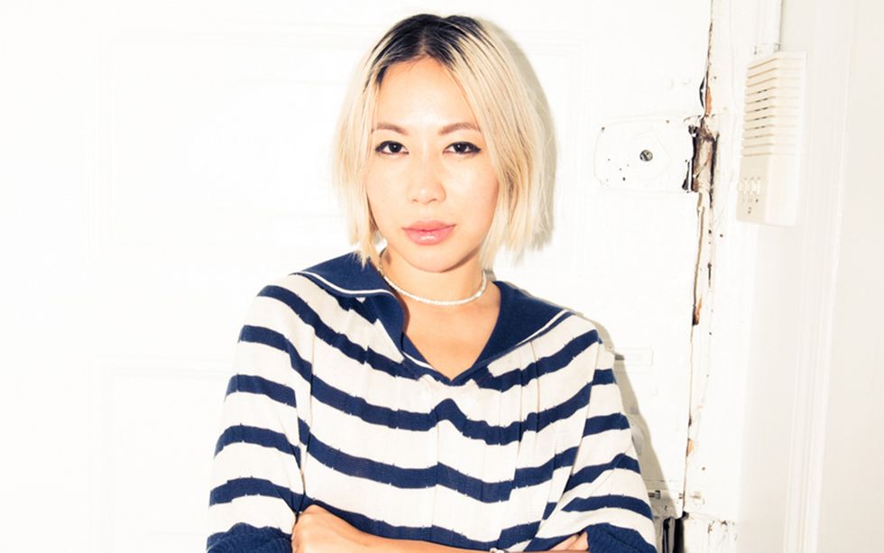 Wearing: “A Simone Rocha Dumpling Bag in pink, an Ana Khouri pearl earring, a Stussy New York mock thermal (my new favorite item), vintage Levi’s 501s, Comme des Garçons multicolor ribbon fur coat, classic black Manolo Blahniks, and Bumble & bumble gel. I recently cut my hair really short and like the gelled-back, clean look.”