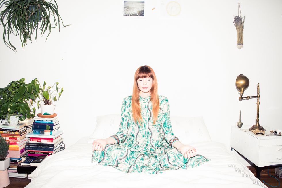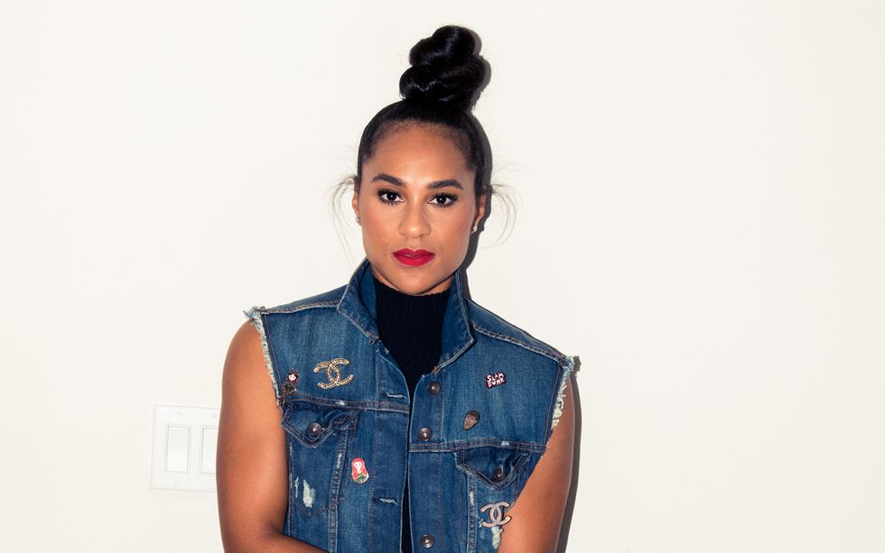 Wearing: “Chic PJs, tassel earrings, red high-top Converse.”