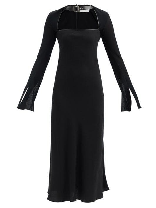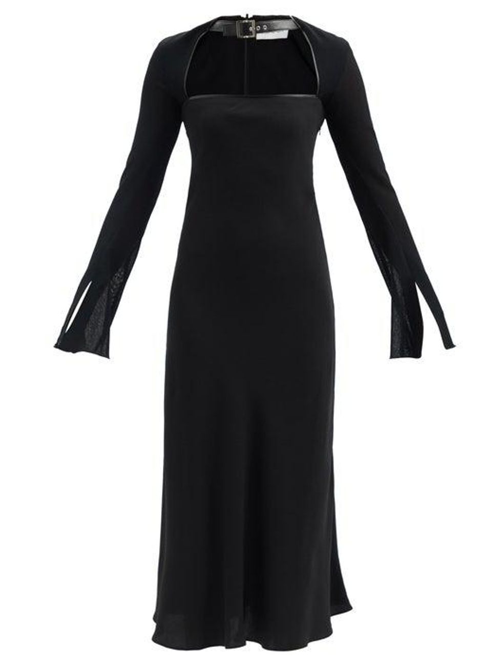 I can always count on Peter Do’s shows for unexpected styling, and I loved the unexpected belted detailing that appeared in so many looks on the runway this season. This dress reminds me of the collection, and the belted neckline puts a fun twist on a classic black dress.