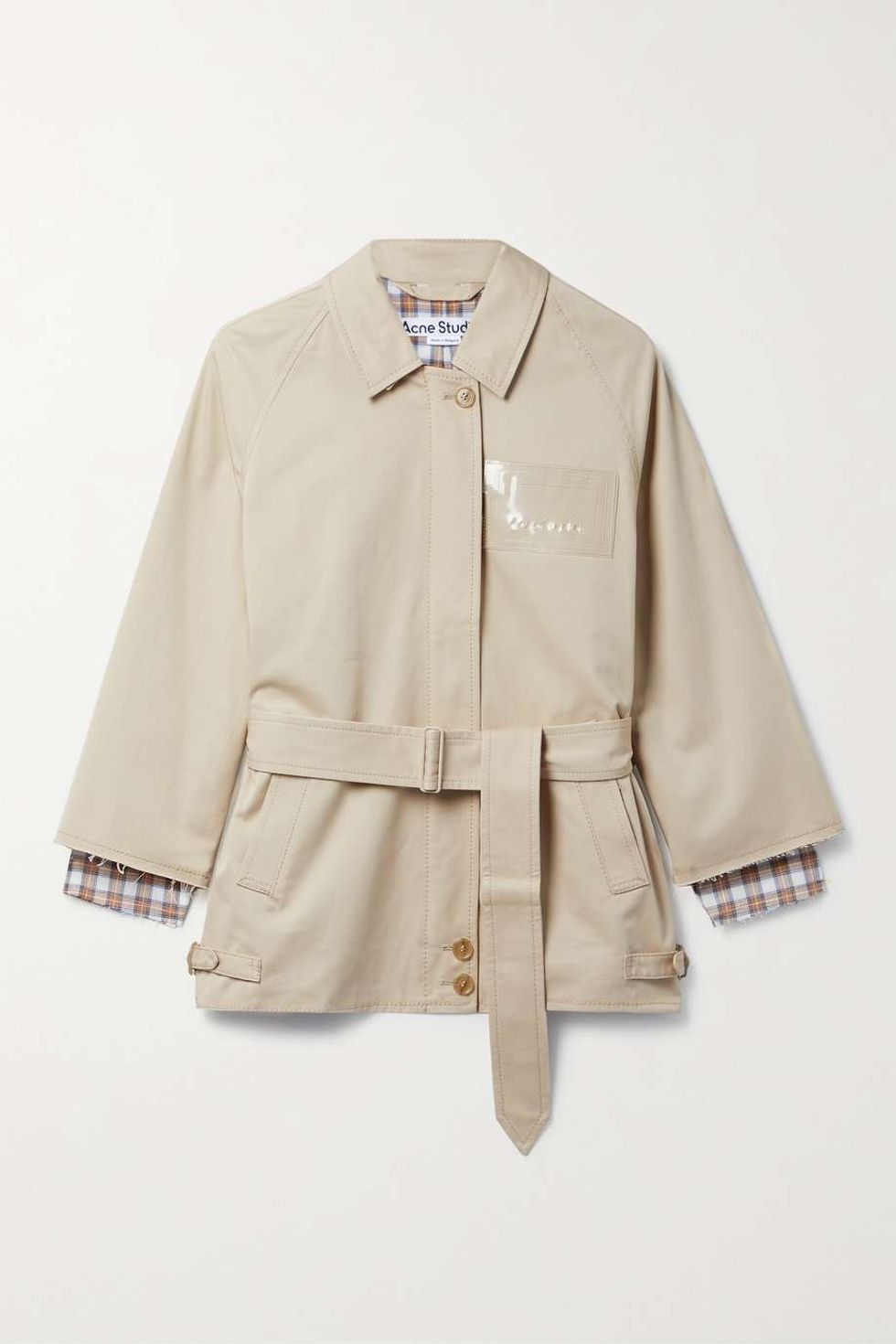 Belted Appliquéd Cotton-blend Gabardine Trench Coat