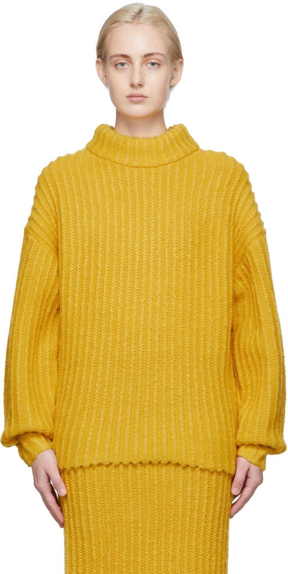 Few pairings are more comfortable than layering knitwear atop knitwear, and this season, we suggest opting for a lemony hue. Coordinate with neutrals for a fresh color combination.