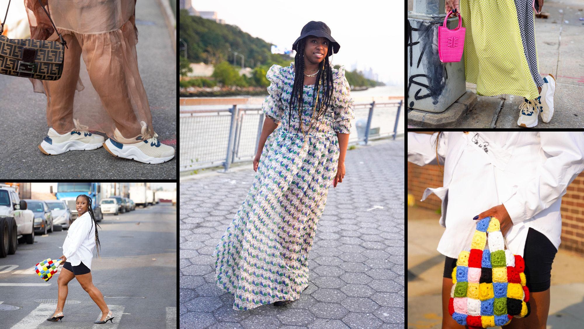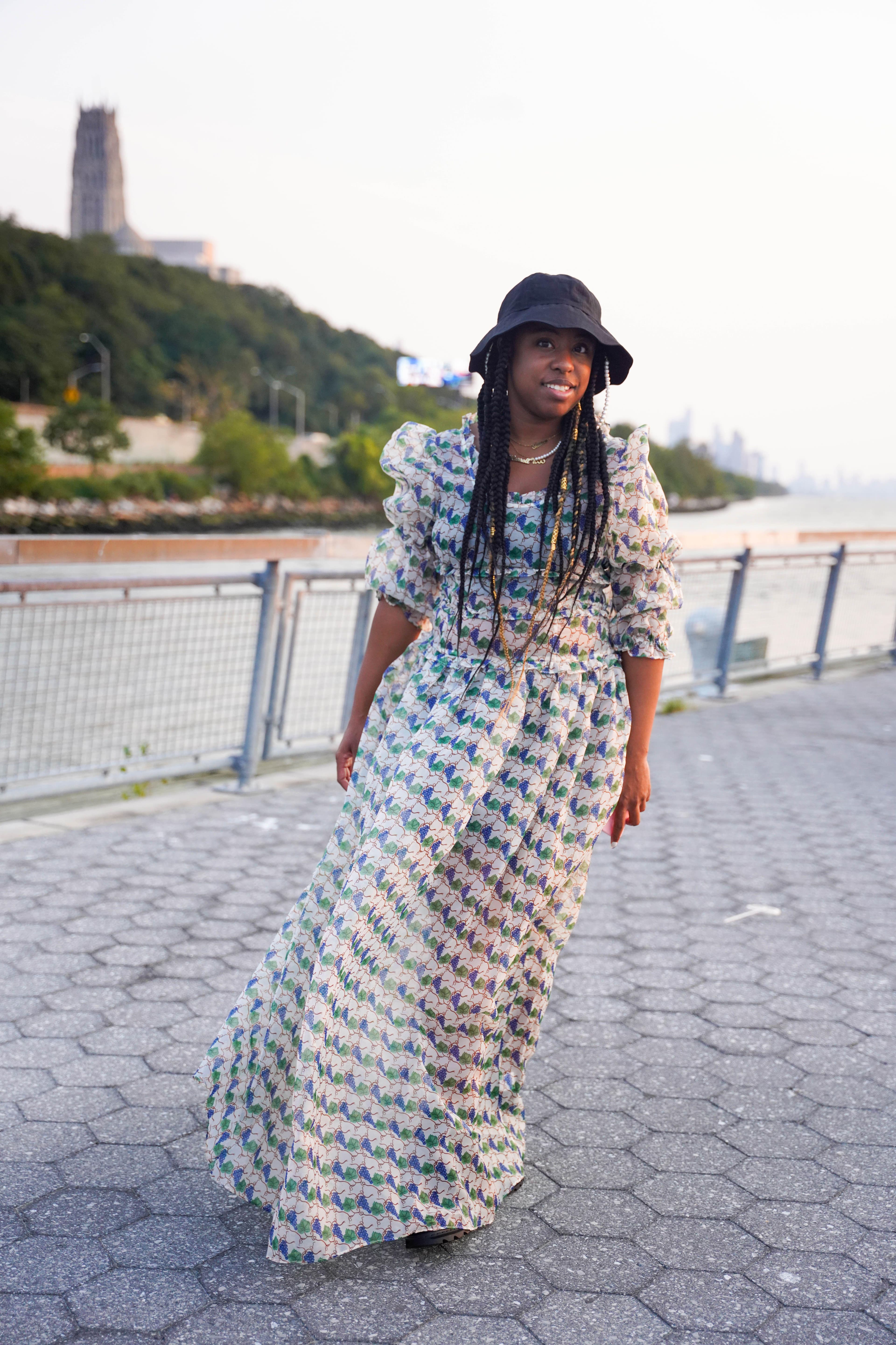 "Fashion is like armor to me. When I go out into the world, it's the way I assert my identity before anyone decides who I am for me. I love the cottage-core movement for Black women because there's so few media portrayals of our lived experiences that give us the space to be soft. I am soft and I'm intentional about giving myself permission to feel vulnerable and feminine, so I wear that on my sleeve—but I'm from Jersey; I also have a lot of edge. So I'll communicate that with my shoe choice (like a dad sneaker) or bag or jewelry. Ultimately, every piece of my look is tied to my mood and the way I see myself."