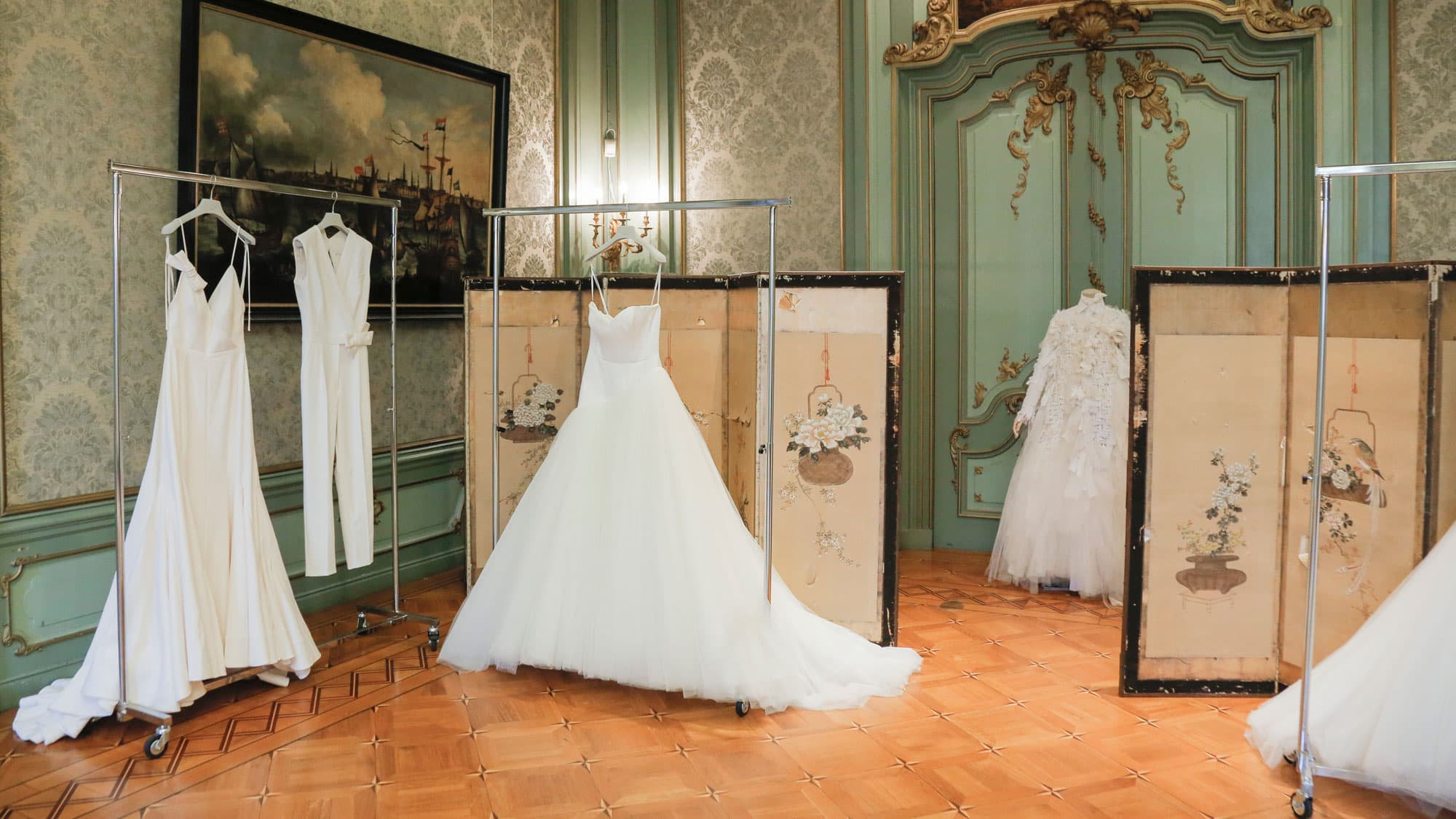 into a stunning tiered dress like you’ve ever seen, and Danielle Frankel is sending the corset dress of your dreams down the runway. Clearly, the fall 2020 bridal market had us audibly oohing and aahing. So much so that we made the sound decision to round up our favorite dresses for you guys.