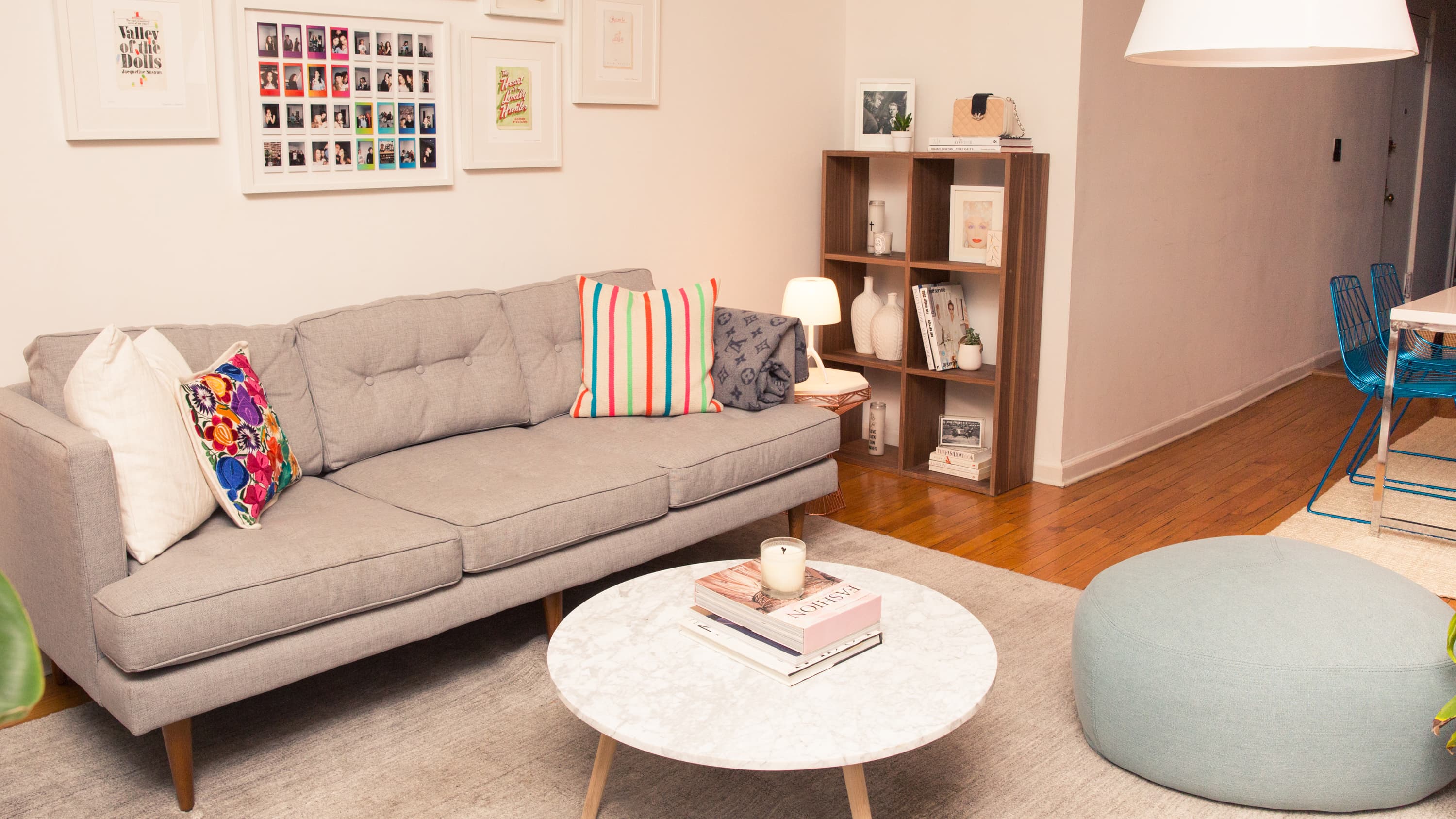 Remember our co-founder Stephanie Mark’s apartment? Decorator Fiona Byrne previously tackled Stephanie’s kitchen, bedroom and closet and completely transformed them into super-comfortable spaces. To round out the whole project, Fiona hit Steph’s dining and living space.