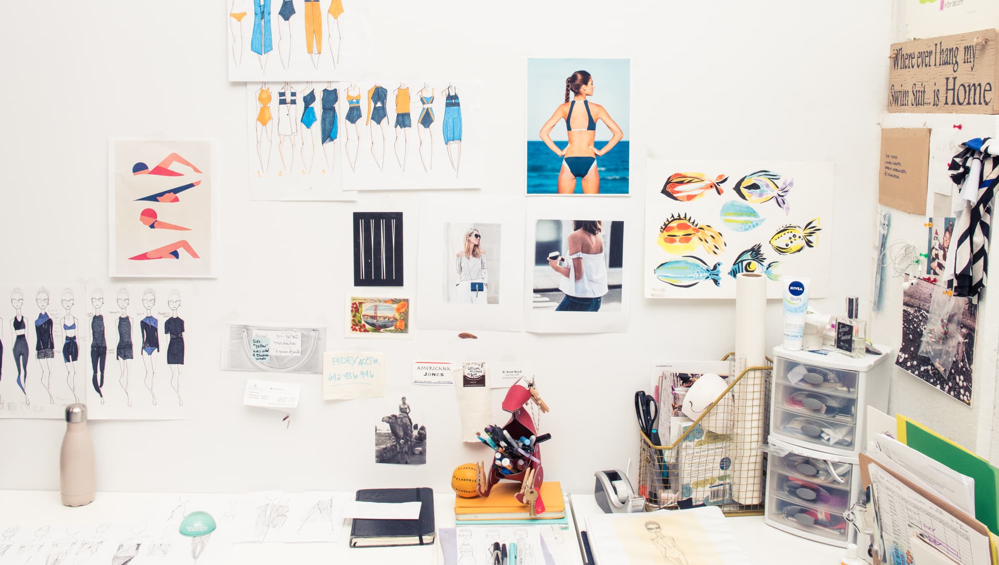 Megan: “My notes from school at that time went from notes to mostly bathing suit sketches.”
