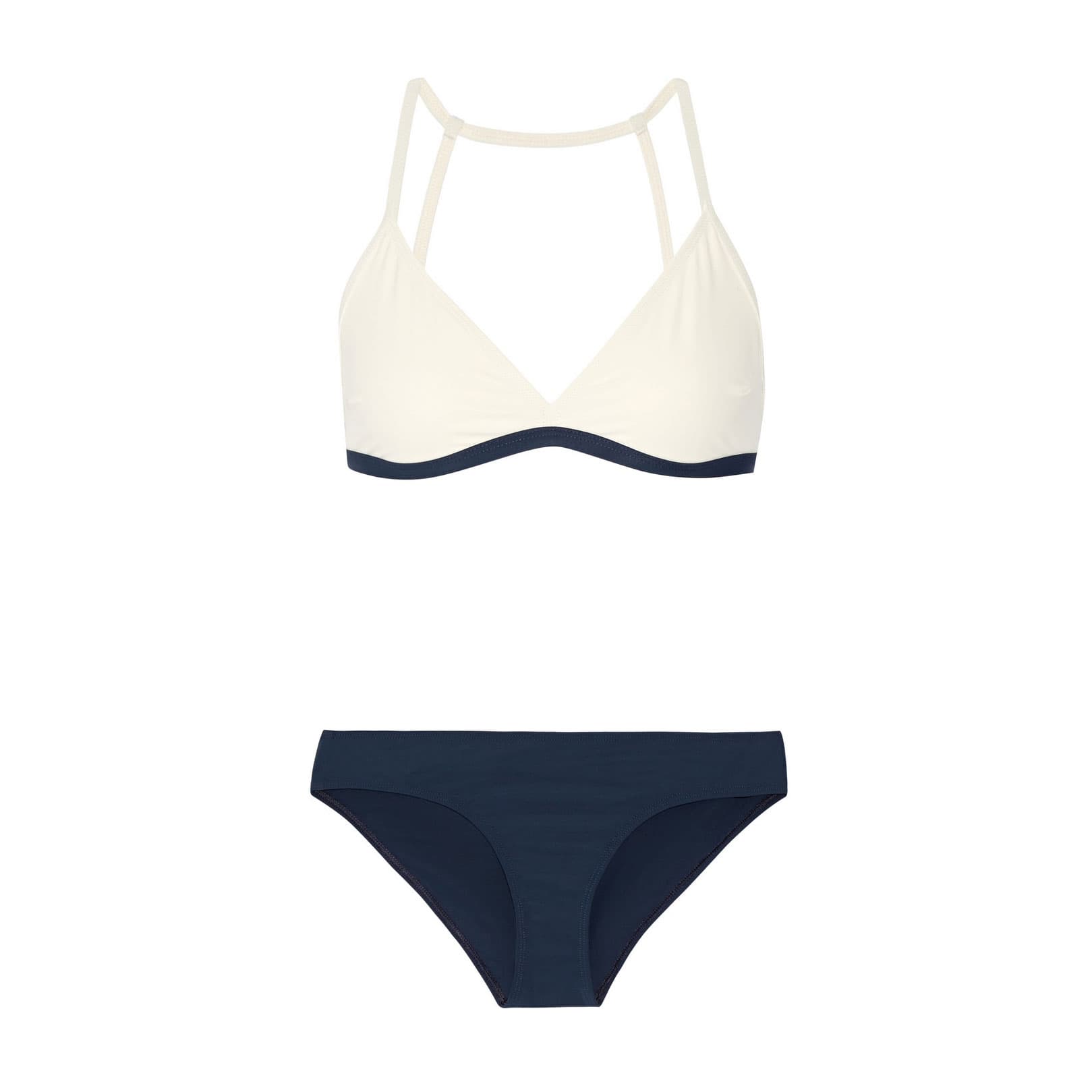Jaime: “It definitely flipped a switch for us. We had to do so much research. We had to be Eres quality at least. And they’re amazing—their fabric is patented. Our fabric was a huge part of it, it’s from Italy and the color cuts are amazing. When we design things, we design them in colors. When we’re thinking about a shape, it’s always a color with another color. We’ve just never really gone for print. Part of our DNA has always been a minimalist aesthetic—we just want amazing colors. We wanted people to feel like they could wear this suit, that was going to last forever—that was a higher price point, but was amazing quality, and to have it be seasonless.