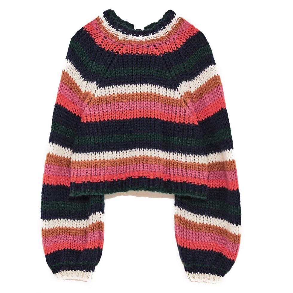 Most of us are drawn to the ’70s because everyone looked so effortless back then—like they just rolled out of bed with shaggy hair and tinted aviators on. Cardellino helped us appreciate the ease of the era even more. A pair of tinted sunglasses + a great knitted (preferably striped sweater) + gold pants or skirt? Outfit gold.