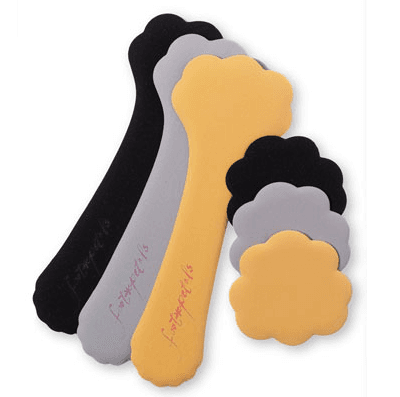 “Foot Petals make a product called Killer Kushionz, which are little inserts made of Poron (a contouring material) and stick to the inside of your shoes. The material doesn’t give, so it adds much-needed cushion. There’s also a product called Amazing Arches, which you can stick into the heel area and will help give you an arch.”