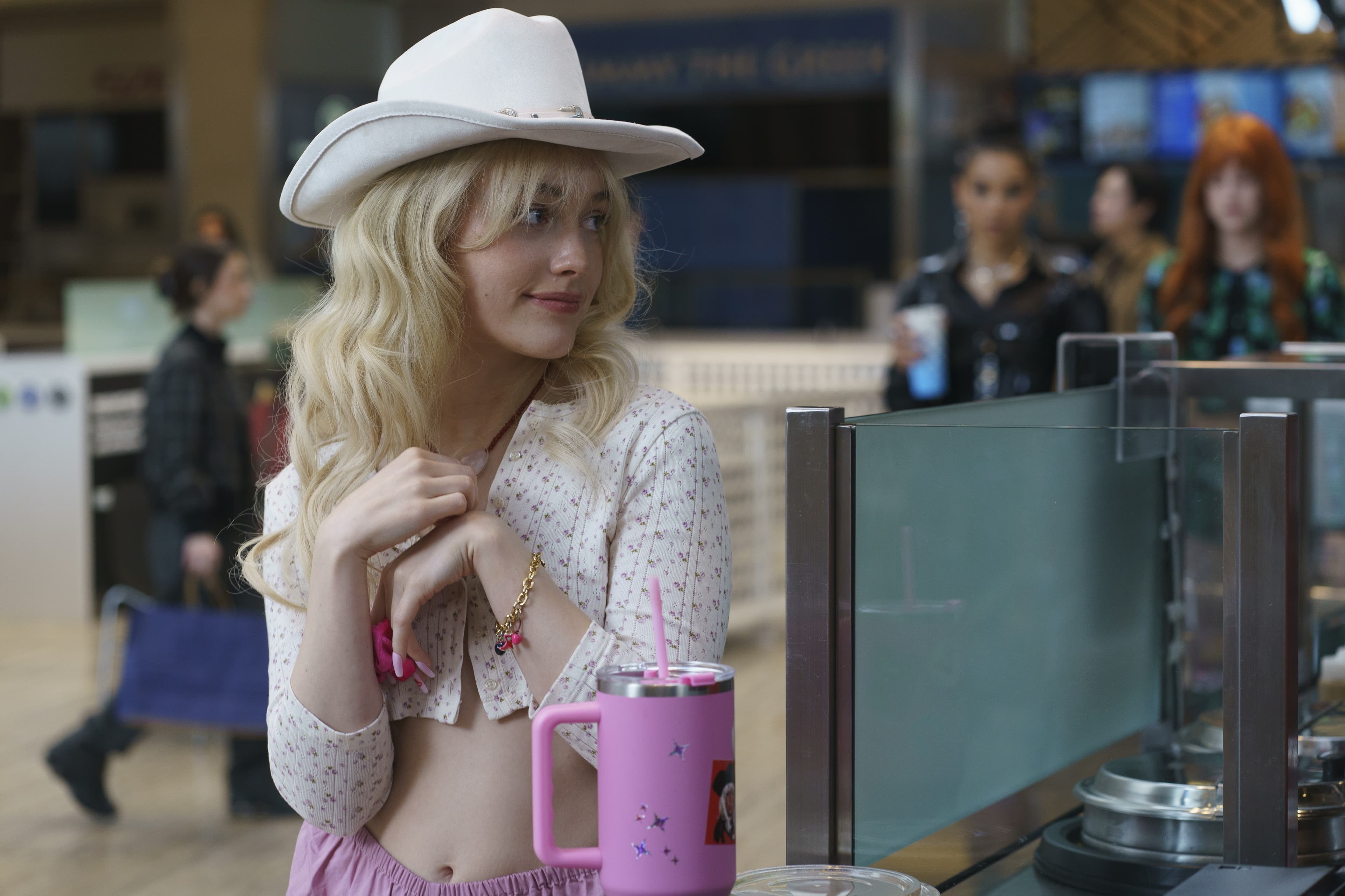 Forbidden FruitsFig was the mall goth, with "slightly nerdy layers" to show off her scientist's instinct. "She's not using the gaze and her body in the same way as Cherry and Apple," explains Millman. References ran from Aaliyah and FKA Twigs to Fairuza Balk. During fittings, Shipp would survey the rack, say "hear me out," and proceed to layer a dress, a bustier, a long sleeve, a coat, a belt, an anklet, and approximately "700 necklaces." Meanwhile, Pickle, a former Free Eden employee played by Emma Chamberlain, embodied the store's style most of all. "Pickle was really like a Texas ray of sunshine… she's the most sort of mall boho, just like earnestly into mall culture," says Millman. "She wore Uggs, and she has a progression where the Uggs needed to reflect the journey she'd been on, and at one point, Meredith was like, there should be a hole where the big toe is. So, we really put those Uggs through the wringer."