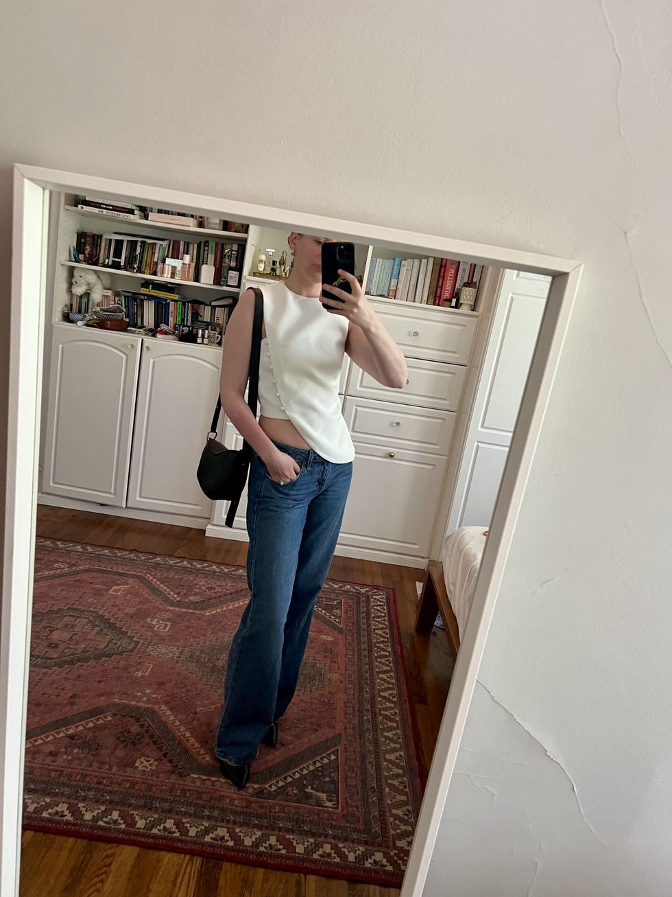 Over time, Hui has used this method to refine his personal style; he loves a good sneaker, a nice jacket, and a pop of color: “People have begun to recognize my style (my friends all know I love a big jacket I could drown in), and shopping has become much easier as my eye edits what works for me and what doesn't.” While Cleary’s personal style seems effortless, it’s the result of a similar process of self discovery and experimentation. “Rather than follow some bland template of ‘the best black pant,’ you should think about key pieces that you specifically can mix-and match in different ways.” Though they might not seem like the usual “capsule” wardrobe items, Cleary’s current basics include items like bright red pants, a cropped black ballerina wrap top, a vintage velvet floral wrap skirt, and patched baggy wide leg jeans. These essentials, she says, “give me so many more outfits—that feel like a reflection of me—than any standard-issue ‘quiet luxury’ basic would.”