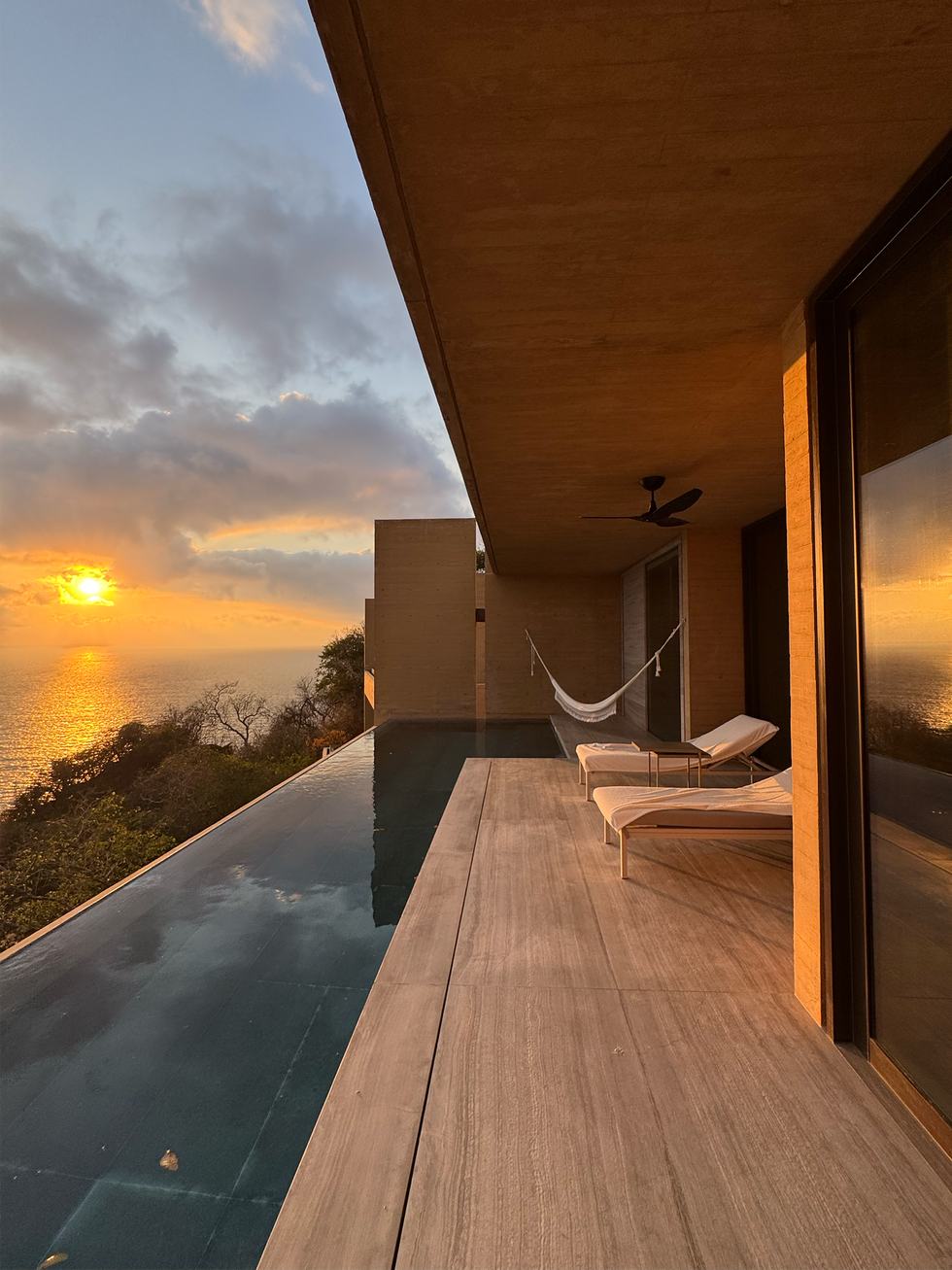 Arriving at Four Seasons Tamarindo on Mexico's Costalegre, or “Joyful Coast,” I was struck by the monolithic, sand-colored concrete structures rising from the lush jungle, evoking Denis Villenueve’s Dune—if it were set by the sea. The dramatic, geometric forms felt futuristic, yet they blended seamlessly into the surrounding 3,000-acre nature reserve.