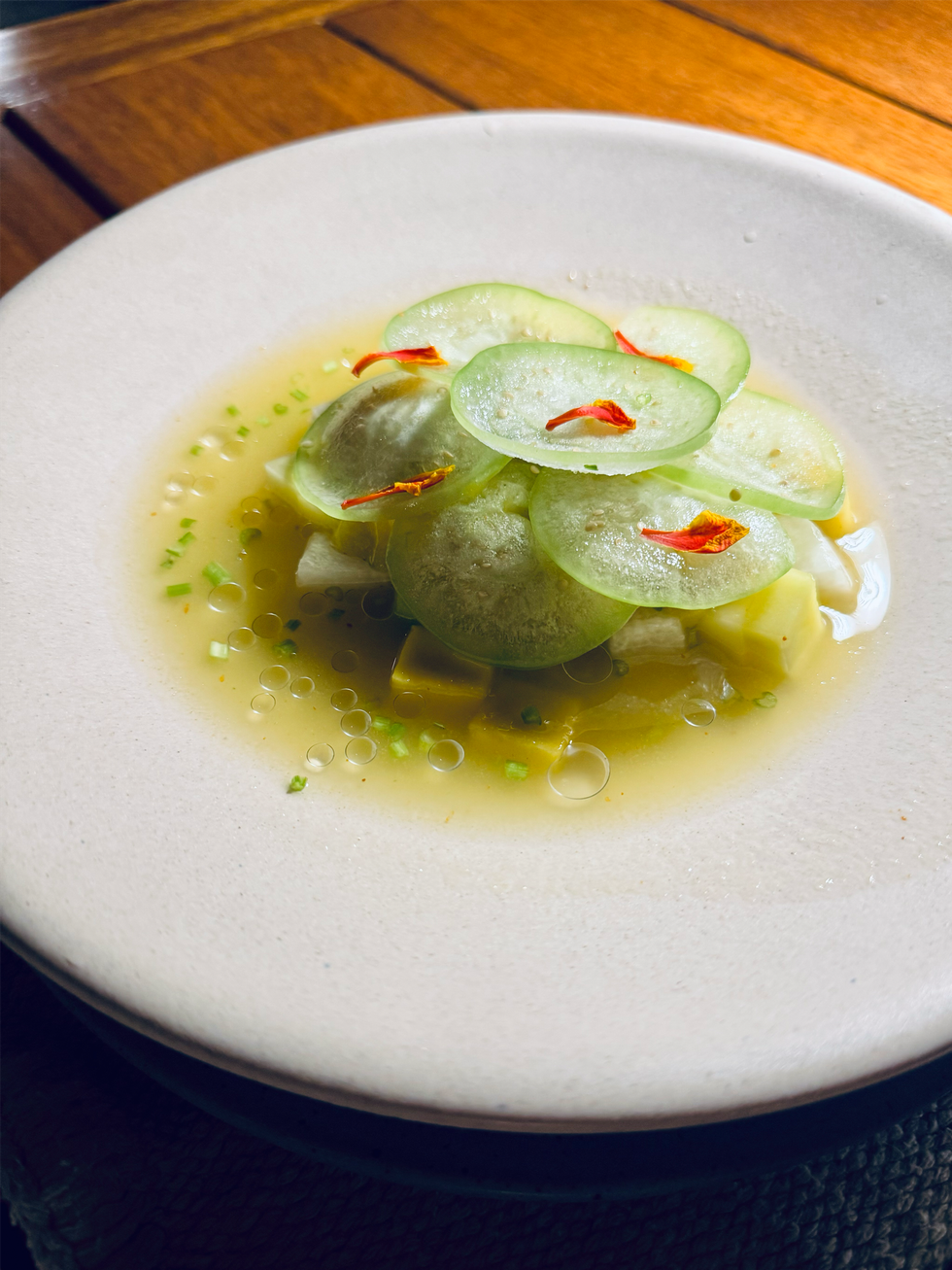 Coyul, created in partnership with the 2023 World’s Best Female Chef, Elena Reygadas, brought flavor bombs to my table. As a plant-based eater of eight years, I don’t always feel like I’m getting the most special dishes on the menu, but here I didn’t feel shorted: Lemon-pickled beets with almonds followed by Jerusalem artichoke with more almonds and a dry chili sauce, washed down with a mezcal margarita, made for a tripartite delight.