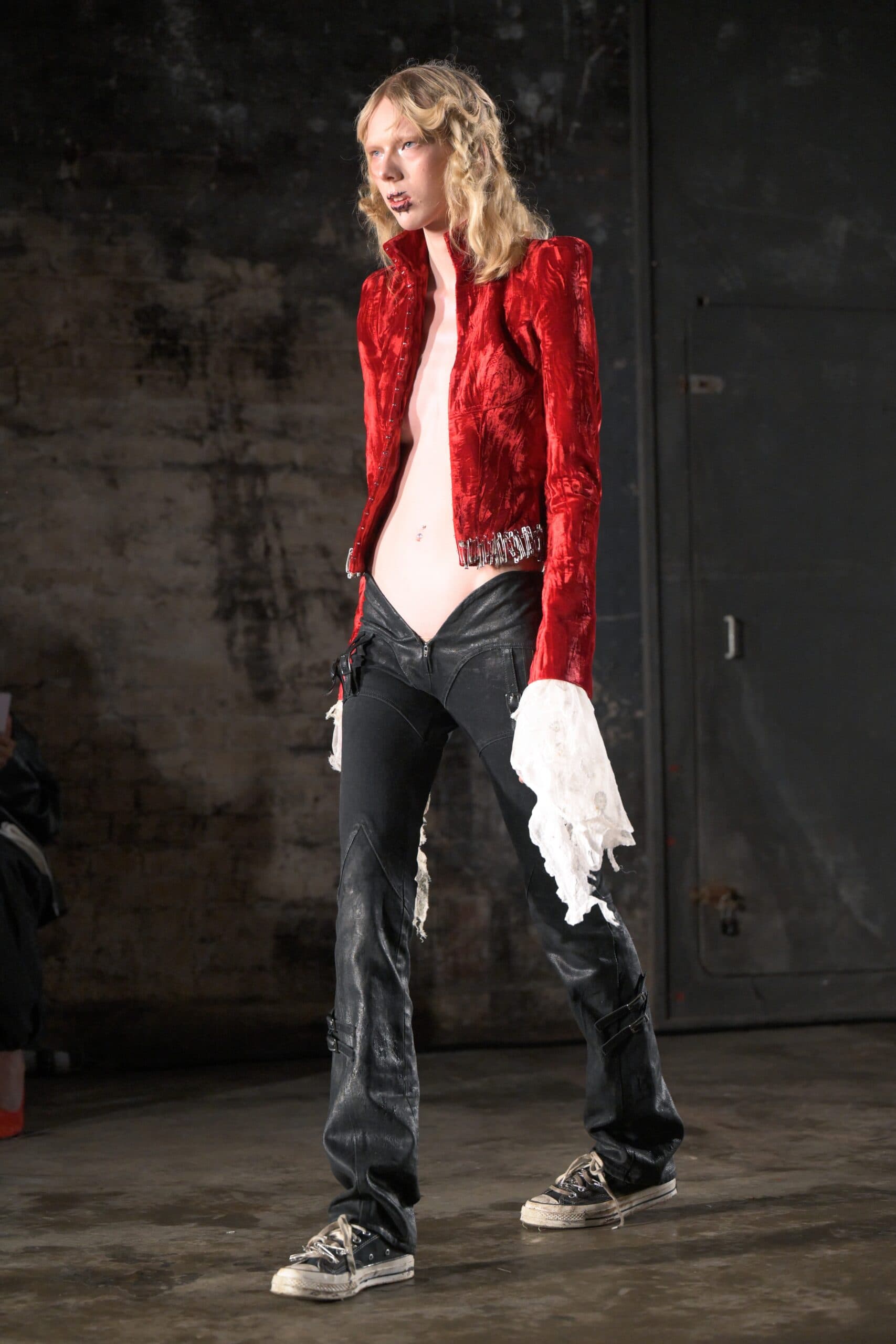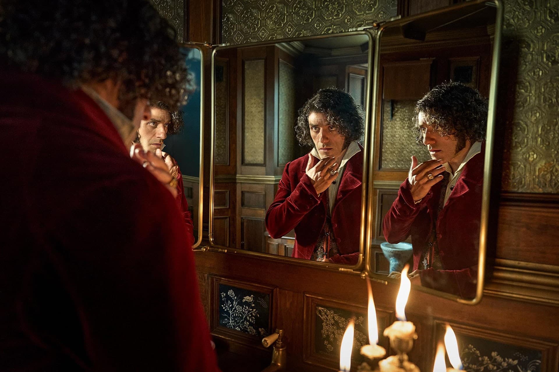 NetflixAt Dilara Findikoglu’s Fall/Winter 2025 show earlier this year, a model emerged in a crimson crushed velvet jacket with lace sleeves poking out of the cuffs, just like Victor’s deep red velvet jacket in the film. Elsewhere at Ann Demeulemeester, hastily layered cotton blouses feature heavily throughout Stefano Gallici’s Fall/Winter 2025 collection for the house, evoking the same bohemian energy that Victor embodies in his cotton shirt as he works in his lab.