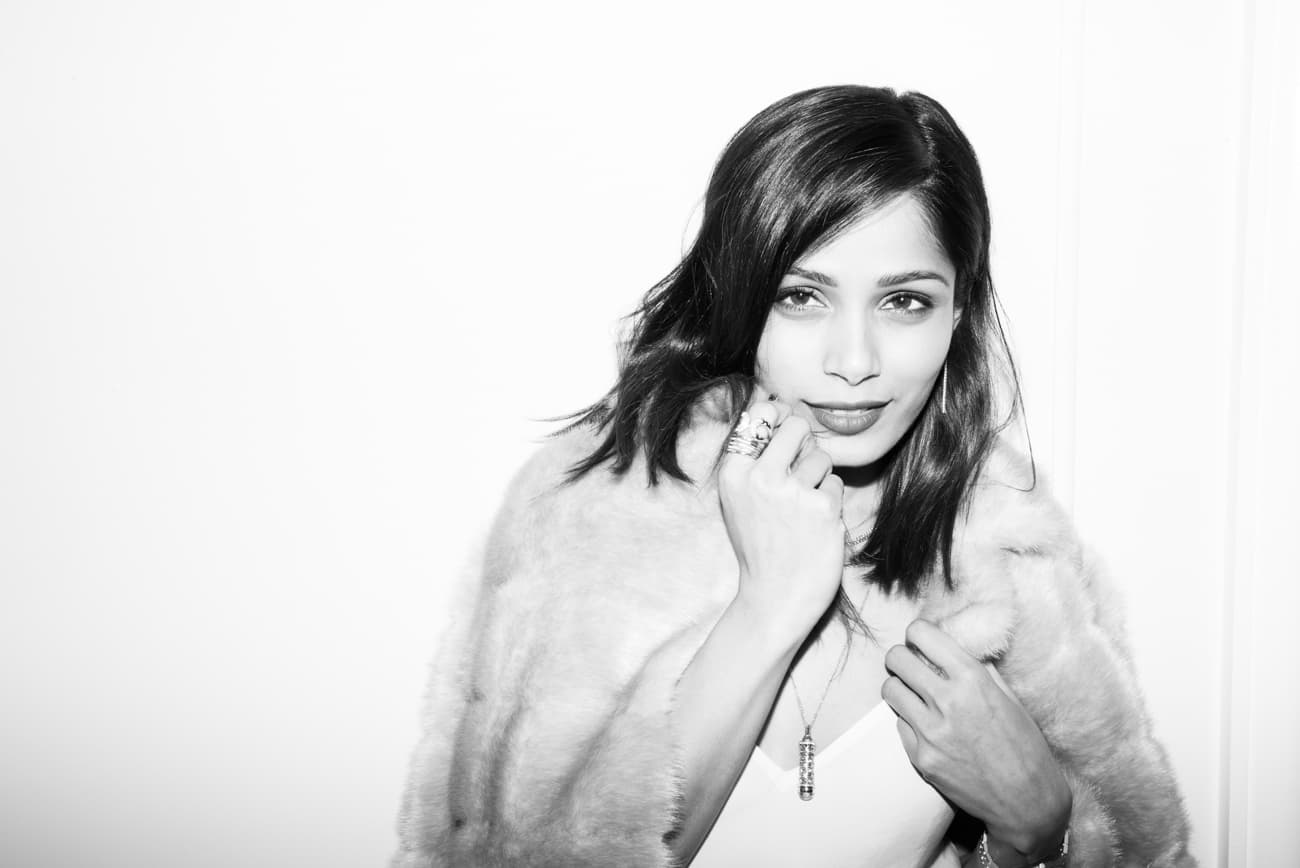 adjacent to Freida Pinto. Again, because we've been there before, we know from personal experience that the potential for awkward silences here is high. But luckily for us, it's not so when you're with the likes of Freida. As it turns out, Pinto comes armed with razor sharp jokey retorts and unfiltered commentary on just about everything (in the very best way possible). Here's everything we learned (or more accurately, gleaned from bombarding her with the same line of questioning we mentioned up there) from the actress; from the best DIY face mask, her biggest beauty misstep and for once and for all, how she gets her eyelashes to do that.