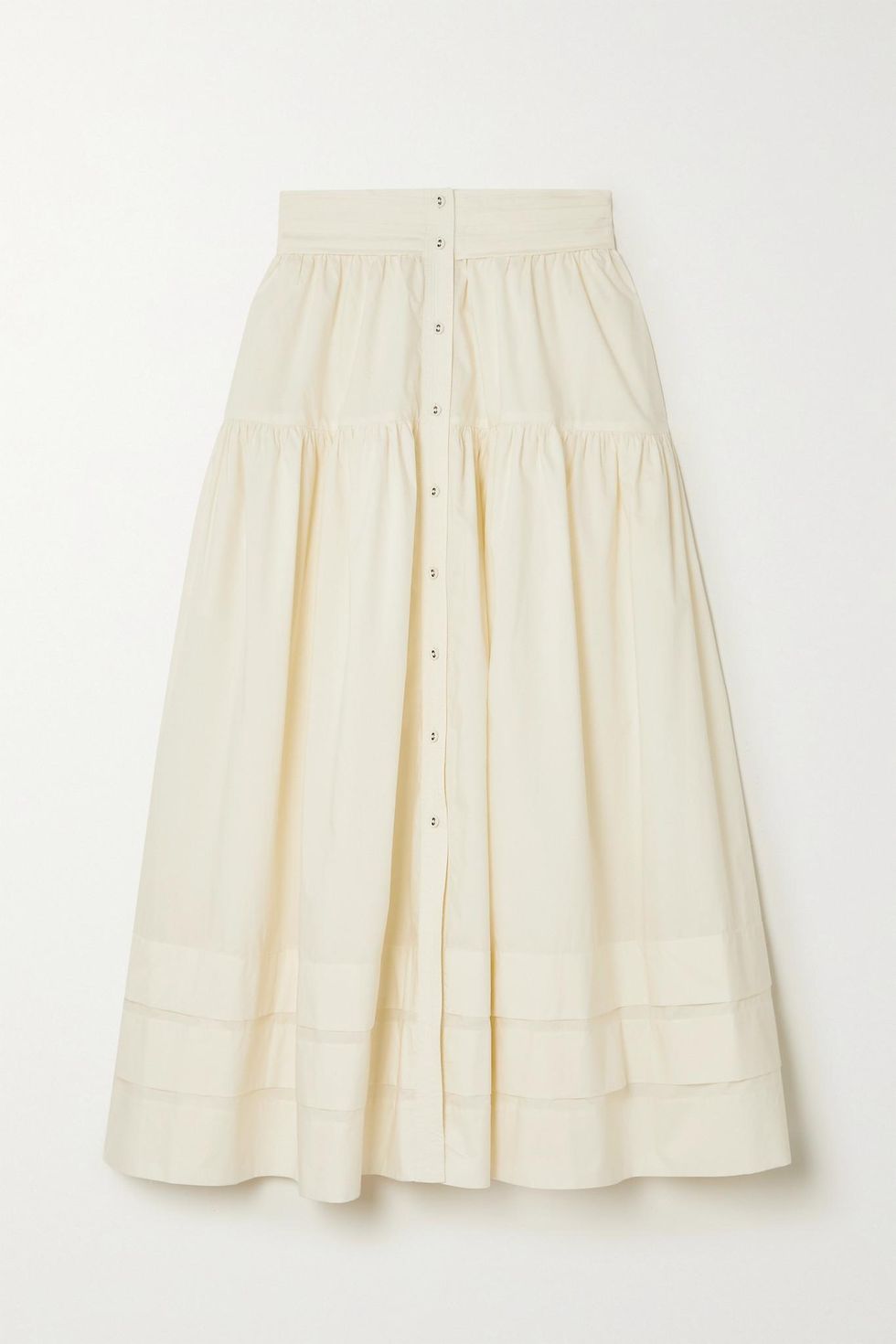 Warmer temperatures—often by default—call for less fabric, seemingly encouraging slinky and more revealing looks. While that's all great, sometimes you want a more ladylike option on deck, and designers are offering up fuller, longer skirts on a silver platter. Lose yourself in the boxy pleats and the voluptuous taffeta of this season's offerings that will carry you effortlessly from summer into fall.