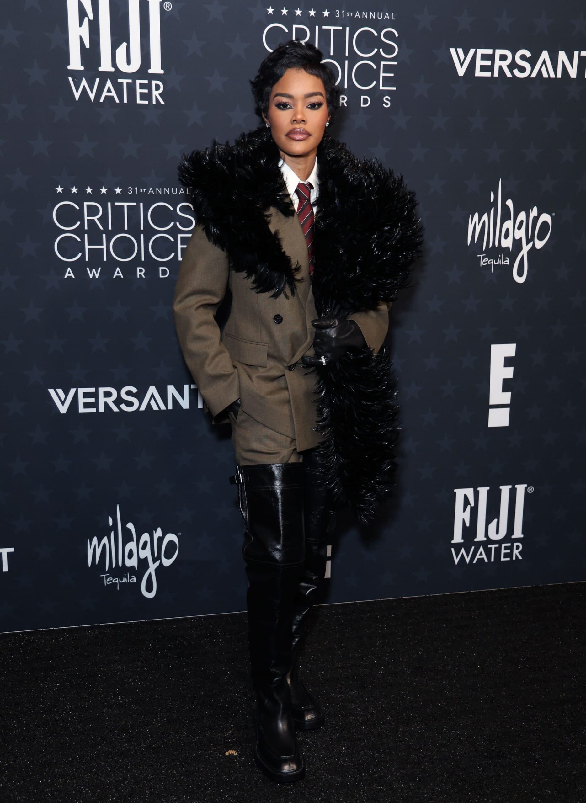 lagossiptv/ the Daily stardust / BACKGRIDFor the 2026 Critic's Choice Awards on January 4th, Teyana Taylor completed a Saint Laurent menswear look with a black fur stole draped over her shoulders in a way that felt both purposeful and effortless. This textural addition made the look feel even more luxe, sophisticated, and glamorous.