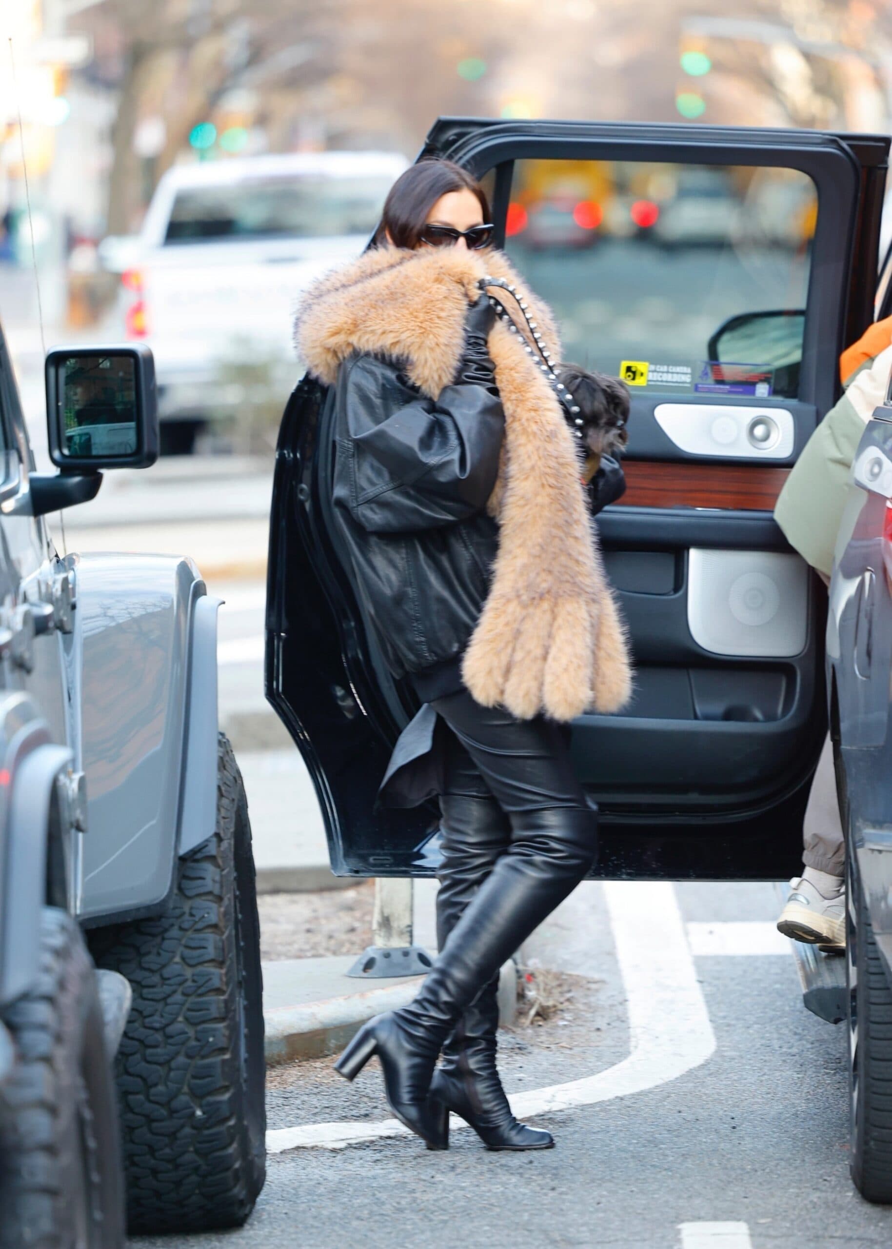 We know and love the cyclical nature of trends—everything that was once popular in fashion will more likely than not reemerge. And now, according to both team Coveteur and a slew of celebrities, this is the fur stole's moment to shine—we are, after all, in a moment where maximal dressing is encouraged. On a night out in Aspen, Colorado, Kim Kardashian embraced texture maximalism in a taupe velvet corset, leather pants, a patchwork ankle length fur coat, and a fur stole wrapped around her shoulders.