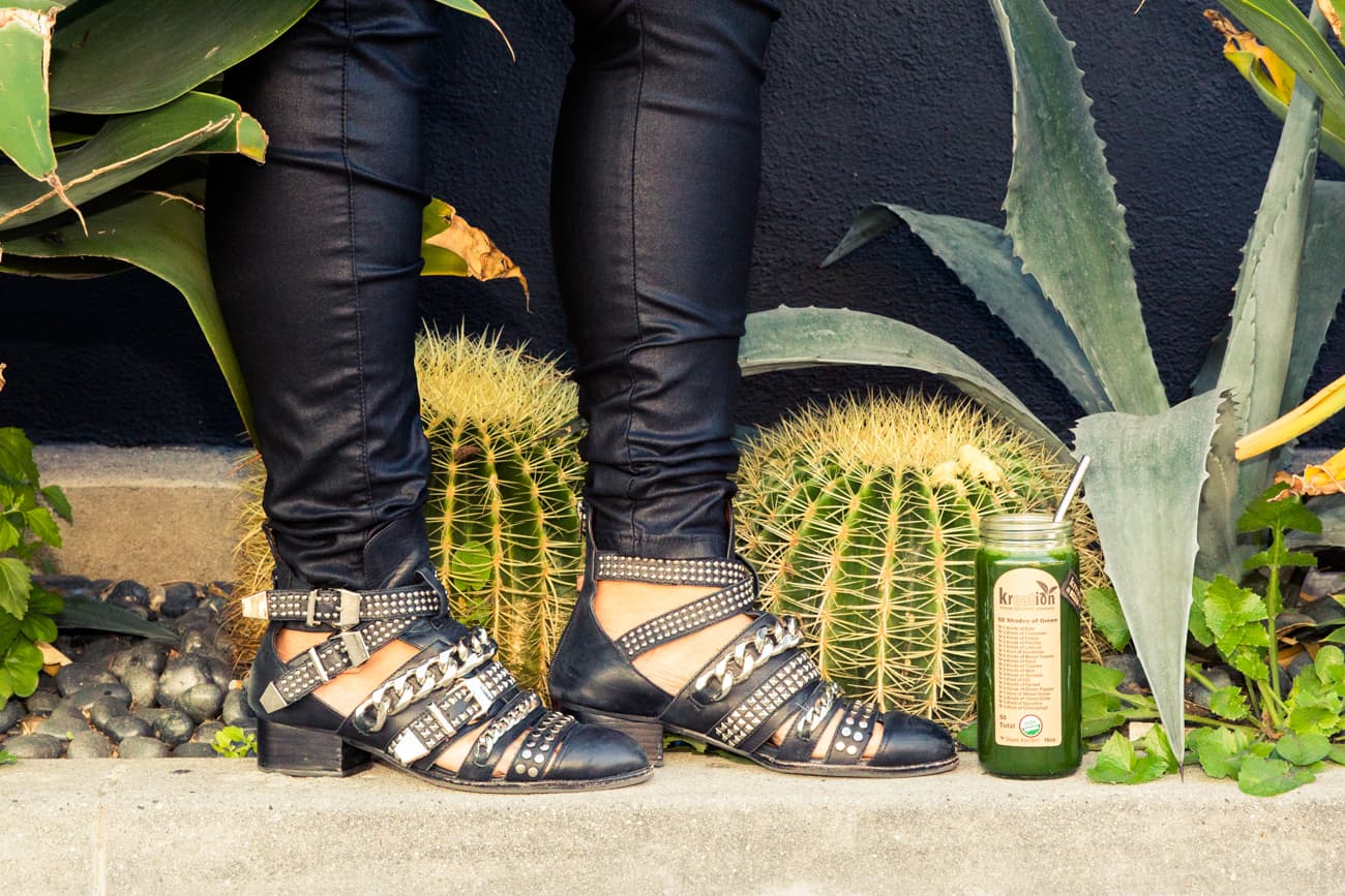 When we say that we're kicking off the month of January with 'physical health week', we do mean physical health in its truest sense—not bikini body week, or weight loss week. In fact, we like to think that our approach to health and wellness coverage (hopefully? Tweet us your thoughts @thecoveteur) embraces that most of us have a weak spot for cheese plates and skipping the gym for Netflix; but we ultimately feel our best when we make time for exercise and eating well—scales be damned (feeling our best in whatever we're wearing is the true test, after all). In that spirit, we sat down to discuss just that with blogger and all around babe Gabi Gregg (who you may know as Gabi Fresh) over bottles of 50 Shades of Green at Kreation Kafe, just off Abbot Kinney in Venice. We talked about everything from goal-setting to staying healthy while travelling, Paleo-ish diets, mental health and self care, Instagram hate, and maintaining your health regardless of numbers. Because eating greens and hitting the gym doesn't always mean losing weight—and that's okay. As Gregg puts it, "as long as you're being kind to yourself."