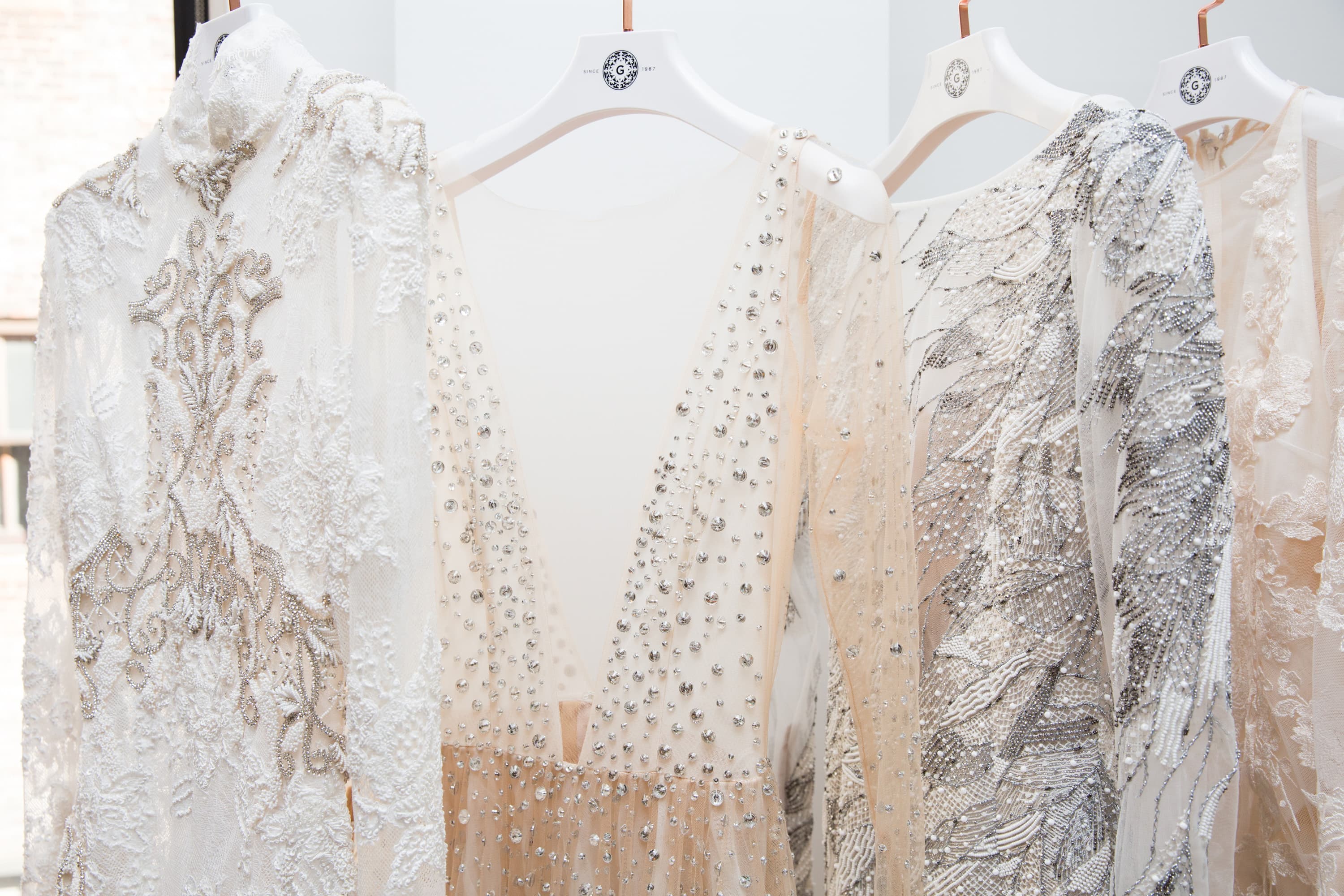 “I know brides always want a personal touch. There’s a lot of appreciation for your initial design, but everybody’s looking for something personalized to say, ‘That was my dress. It’s unique, nobody else is going to have it.’ It could be a minor tweak, but it changes everything for the bride. And I kind of enjoy it because every dress is a creation. When I look at the dresses in the studio, all the rows of mannequins, I can see most of the brides and how the mannequin comes to life and gets a different character. Sometimes, you have two or three dresses that are the same, but they have a different life. You can tell that it’s not the same person wearing it. That’s how it should be.”