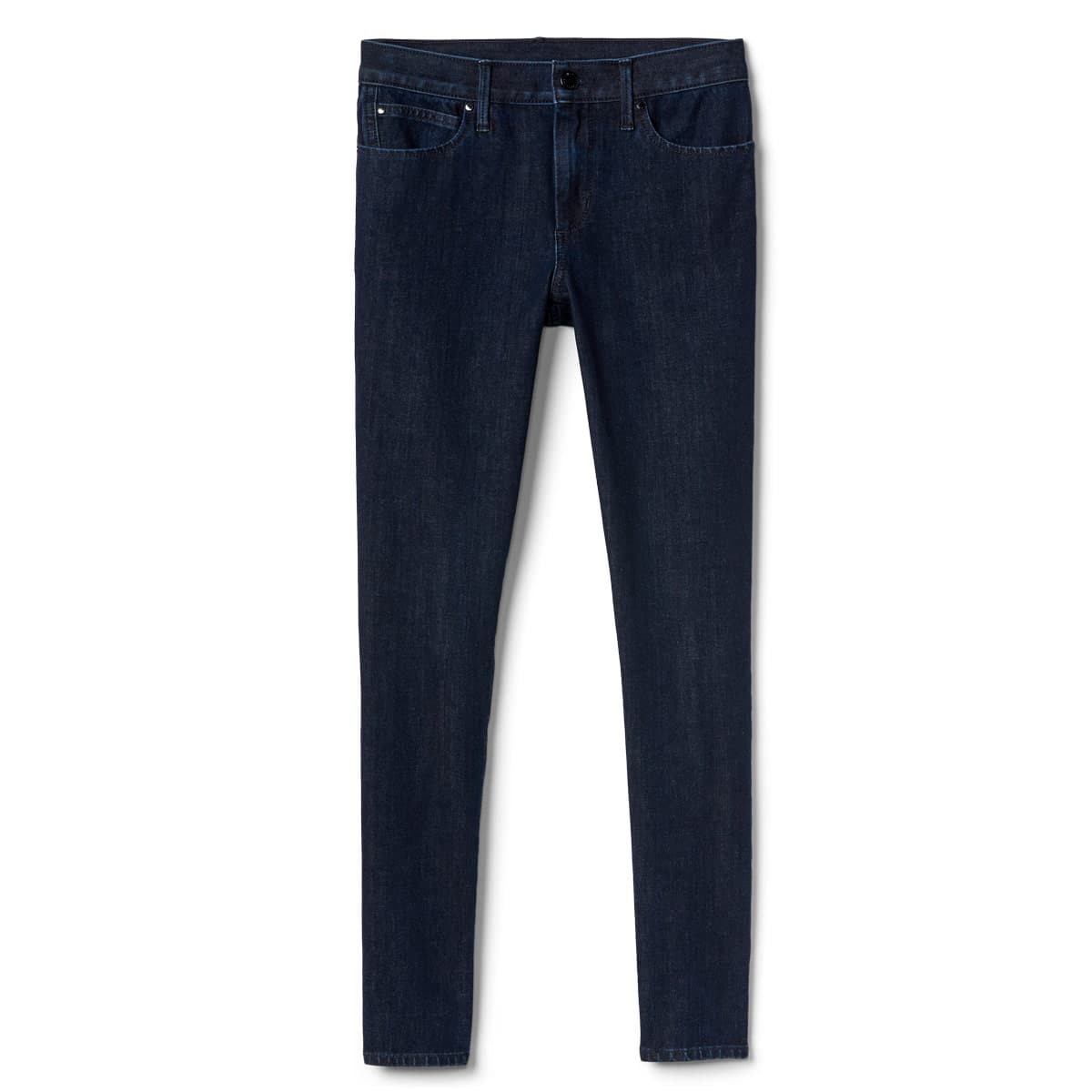 After all, the one undisputed rule of cool is that it only really works when you at least look like you’re not really trying—and there’s nothing that screams “effort” quite like squeezing into a bandage skirt and teetering heels you can barely walk in. In other words? Jeans for the win. Namely, Gap’s Super Slimming denim. These babies were developed with innovative technology to ensure there’s no stretch from left to right in the fabric used, but plenty running up and down the jean—resulting in mile-long legs and perfect for pairing with a cool, directional mule and tequila on the rocks. The sleek, tailored fit; variety of pulled-together-looking dark washes, and most importantly, the statuesque legginess they give us, have landed them firmly amongst the ranks of our closet’s MVPs, and our go-to item to grab when heading out for drinks. Here’s how a handful of Bustle and Coveteur staffers style them.