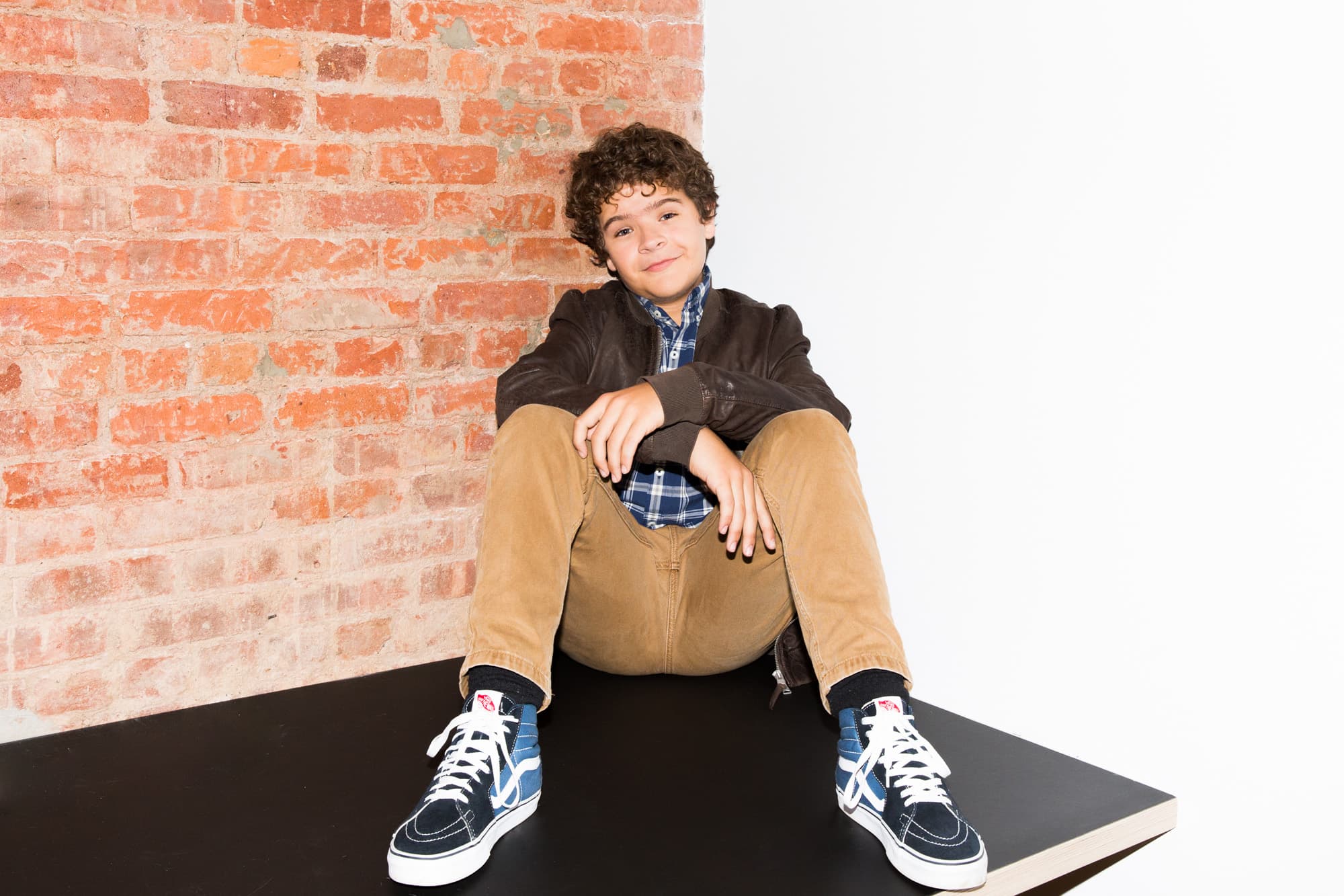 “Oh my god, I love him!” That’s the typical response I get whenever I mention Gaten Matarazzo, aka Dustin from Stranger Things. And how could it not be? The 15-year-old from New Jersey is most definitely a fan favorite on the show: that funny, curly-haired friend, with hilarious expressions and the most GIF-able lines (“She’s our friend and she’s crazy!” “I found the chocolate pudding!”). It’s that sheer talent and lovable quality that has garnered him a huge fanbase—including members of the Coveteur team, some of which stayed late at our office solely to watch him walk in…with the cutest puppy ever. (It truly felt like our birthday.)