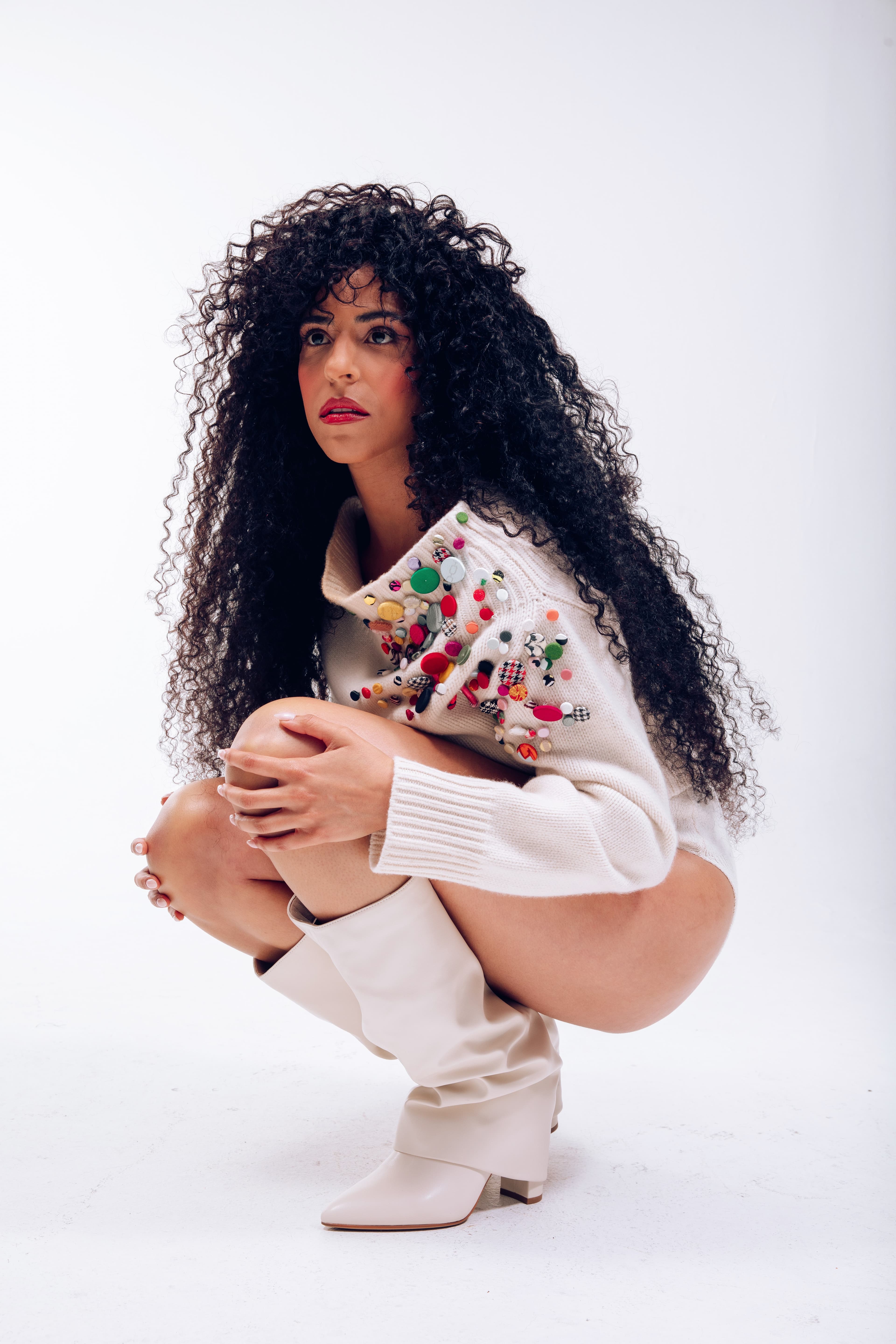 Sweater: Hellessy; Bottoms: Vintage; Boots: Stylist's Own