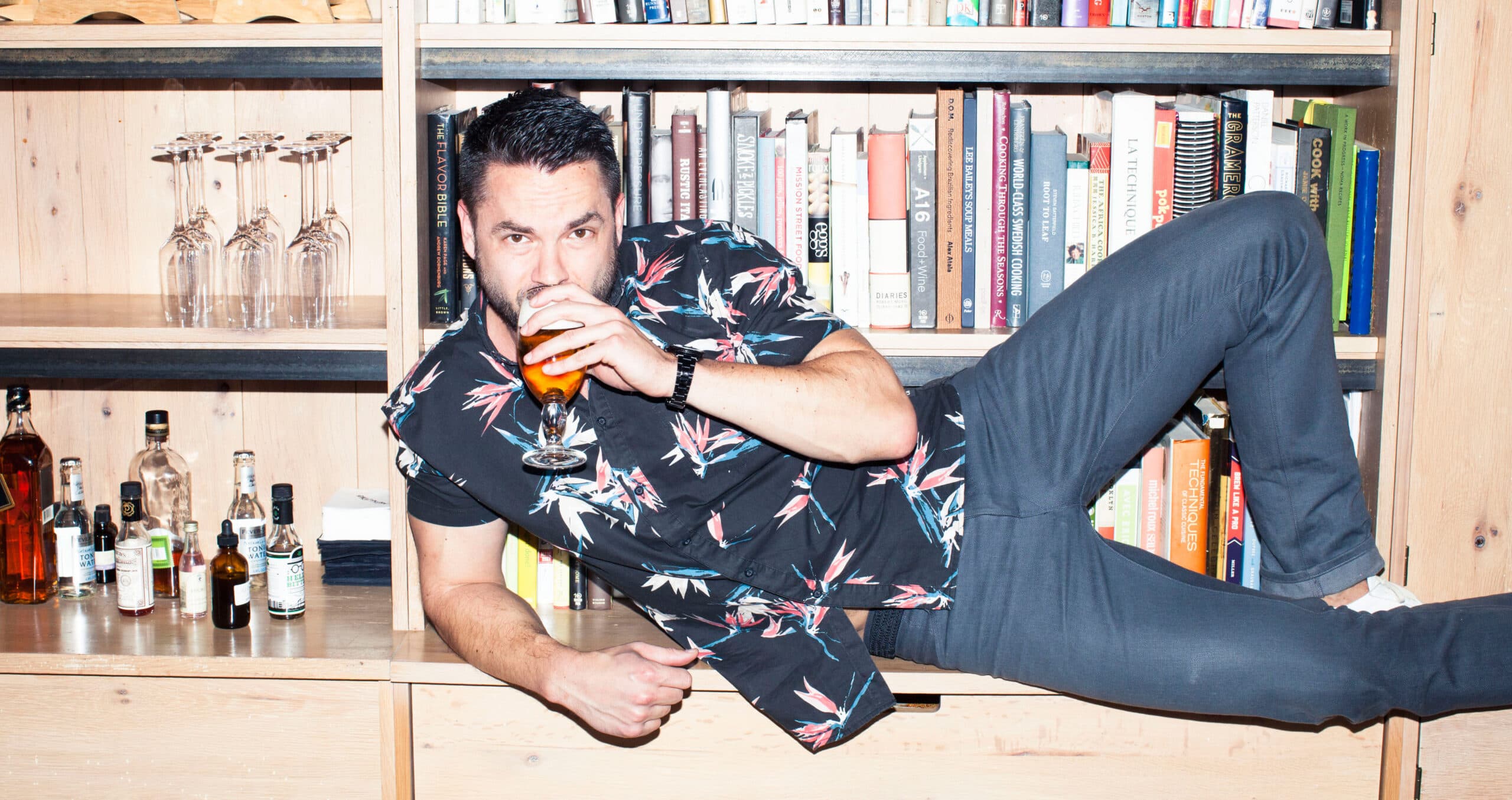Bartakovics is the quintessential entertainer, and when we got the chance to visit his Soho loft (which screams “I am home to the coolest guy in Lower Manhattan”), you’d better believe we wore our aforementioned party pants. Our day began at the Tasting Table test kitchen in Soho, where Bartakovics whipped up a batch of Tequila Gimlets before doling out ice-cold beers in take-out containers, and leading us to his apartment to rummage through his closet and eat jellybeans. Before noon (on a Tuesday…), we had a steady buzz, a sugar rush, and a verifiable crush. Here, he explains what exactly Tasting Table is and what it takes to launch a company, be a policeman, and (as if that’s not enough) actualize all your life goals by 40.