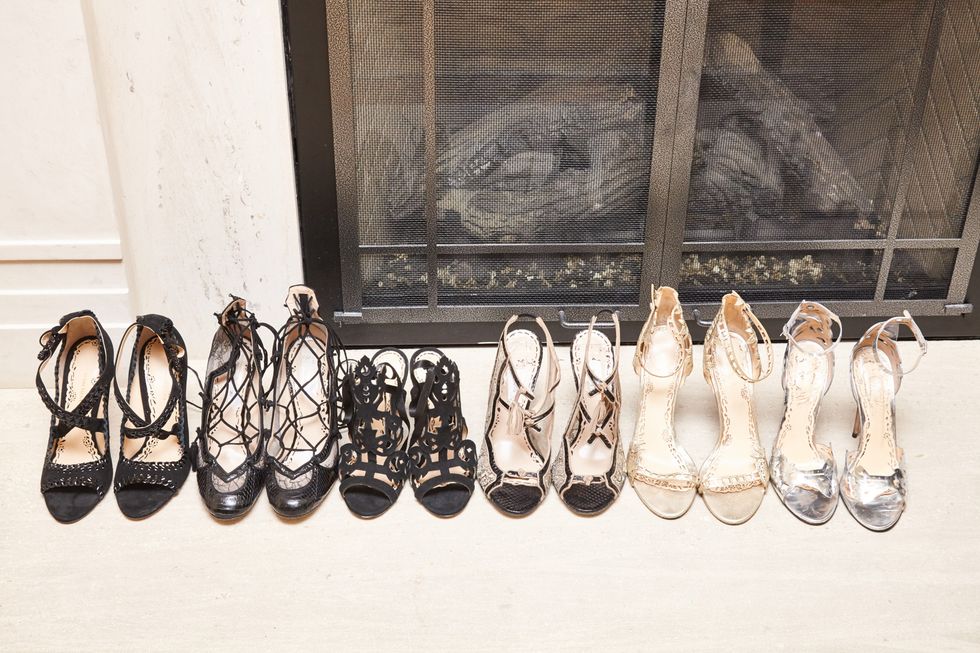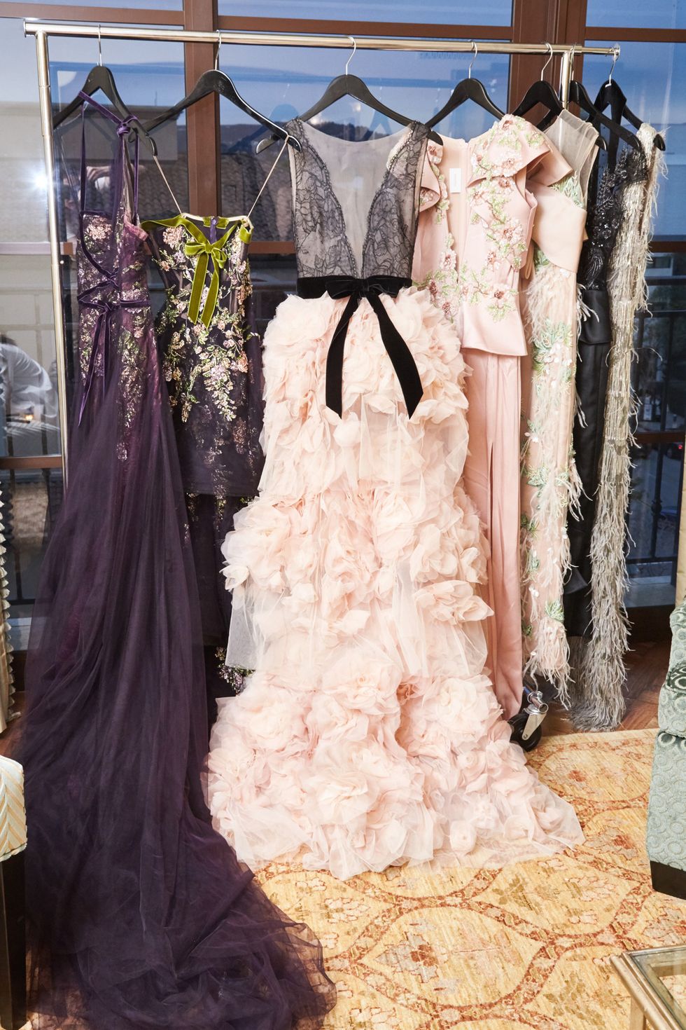 With all of the above in mind, you can probably imagine that when we had the chance to drop in on Chapman getting ready for the Weinstein Company pre-Oscars party Saturday night, we not only took it, we ran with it. We then proceeded to rifle through the rack of gorgeous Chapman-designed custom gowns, shoes, and jewelry in a suite at the Montage Hotel in Beverly Hills, sip a little champagne, and catch up with Georgina on what goes down during her awards season getting-ready process. All in an Oscars weekend’s work, right?
