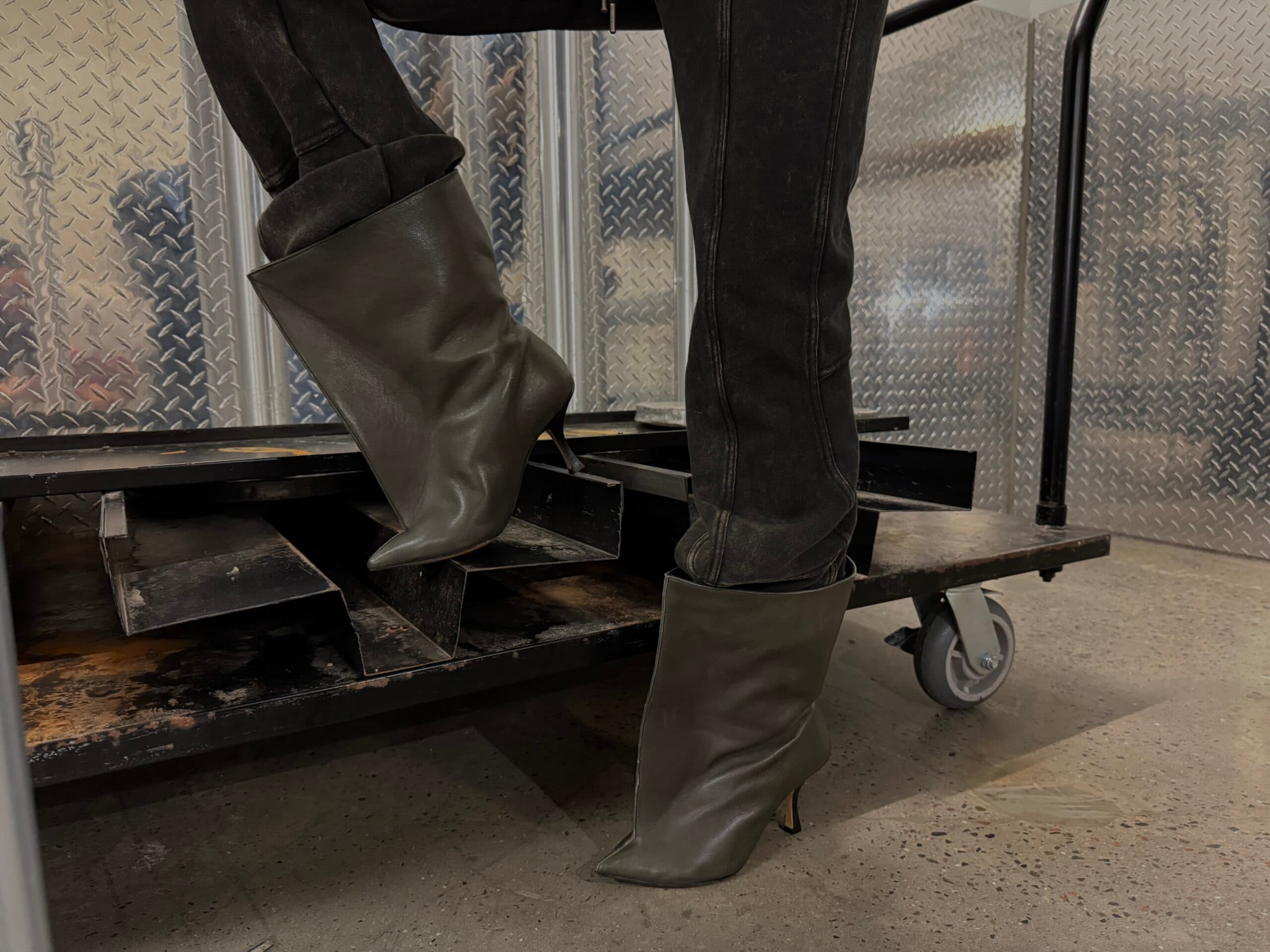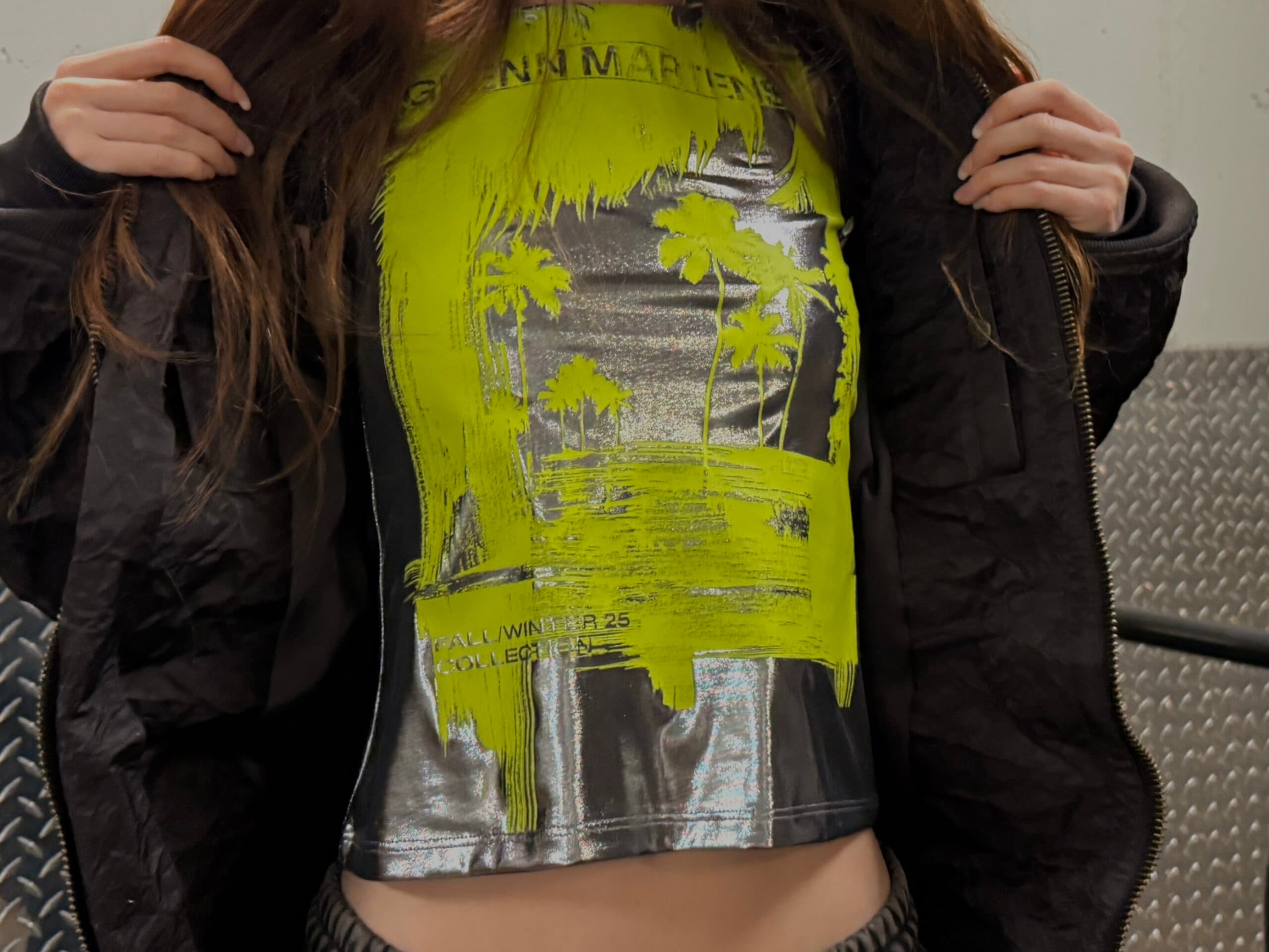 Coveteur""I love this foil bonded men's bomber jacket that you can manipulate into different shapes. It feels luxury and slightly different to your average winter bomber. I'm also into a metallic moment and always a baby tee ,hence my choice of shirt. The boots with a wide ankle are on the up this season for peak pant tuckage, which I'm also on board with." - Ella O'Keeffe, Senior Fashion Editor