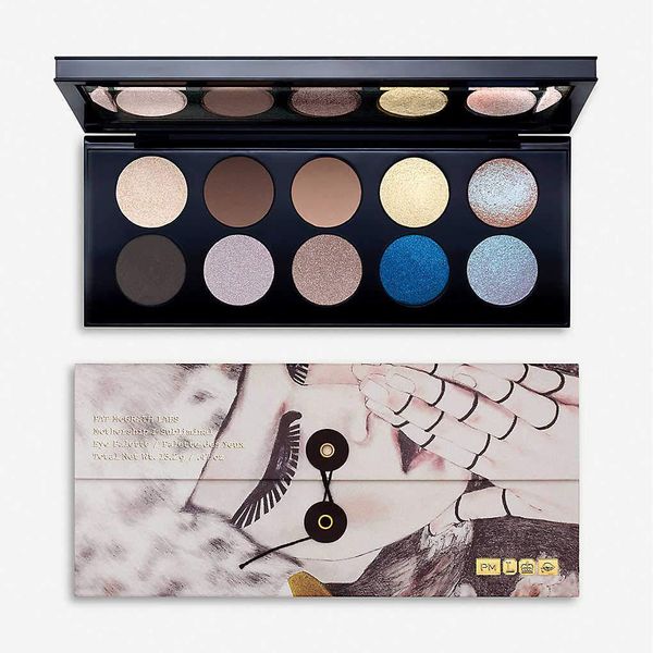 Makeup artist Pat McGrath developed this bold smoky eye for the Schiaparelli runway. First, she blended the shade Xtreme from the Mothership I: Subliminal Palette into the crease of the eye and extended the pigment to the outer corner to give the eye a more elongated shape.