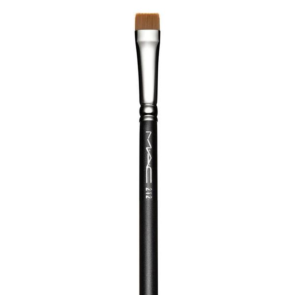 Next, McGrath took an illuminating pigment and dabbed it into the corner of the eye for a mini-highlighter before coating the top and bottom lashes with a lengthening mascara.