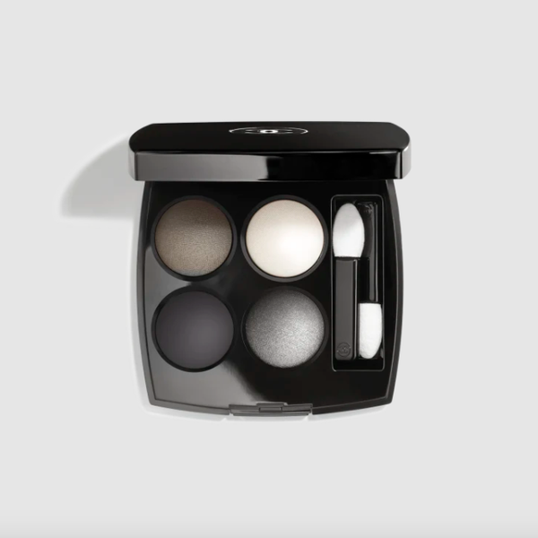 Eyeshadow time: Take CHANEL Les 4 Ombres Multi-Effect Quadra Eyeshadow in Modern Glamour and sweep either the black shade or the silver shade tall across your lid then finish off your look with a volumizing mascara.