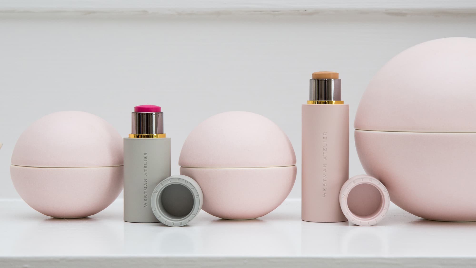 , launched at Barneys last week, mostly consisting of stick cream formulas (the format of foundation with which she first learned to do makeup): 11 foundation shades with more to come, four blushes that you can also use on your lips, one white highlighter, and one tan contour color. The last two products are in compacts: a powder bronzer marked with the Westman Atelier logo, drawn by Westman herself, is the only non-cream product, and the Super Loaded Tinted Highlighter, which we bet will be the sold-out hero product as soon as people catch on.