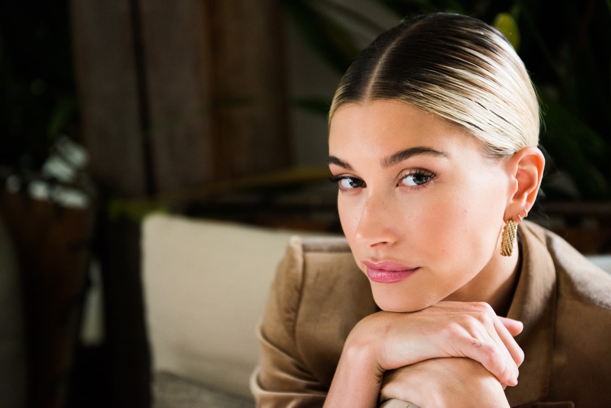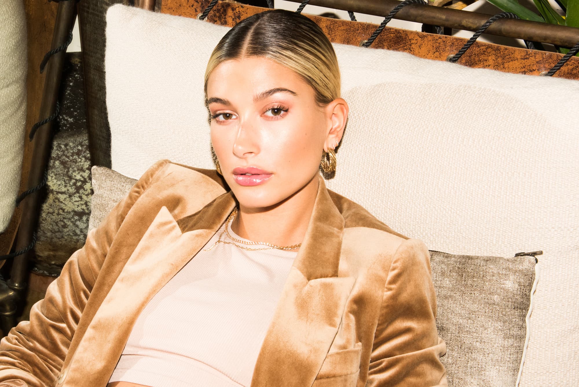 Anyhow, even though we were literally hanging out with the model and most-followed member of the Baldwin dynasty on a couch at One Hotel Central Park the day before the alleged nuptials, we had zero idea that it was all about to happen. In an all-beige suit and crop top with her signature flawless bare-skin makeup (at the hands of a Coveteur favorite