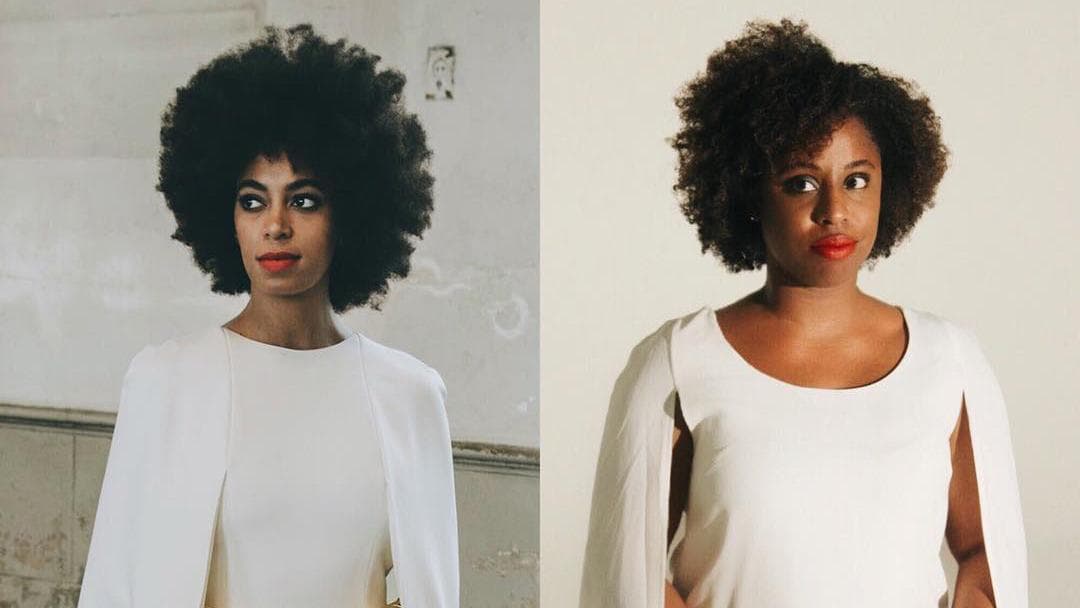 “I knew I wanted to wear the cape dress and Afro look from her wedding, so that was probably the easiest costume to pull together. A fun fact is that our market editor at the time, Brian Giuducci, called in the exact Erickson Beamon dress Solange wore to SNL, so we were pretty excited about that. We didn't have a costume competition at Condé Nast then but if we did, we certainly would have won it—hands down!"