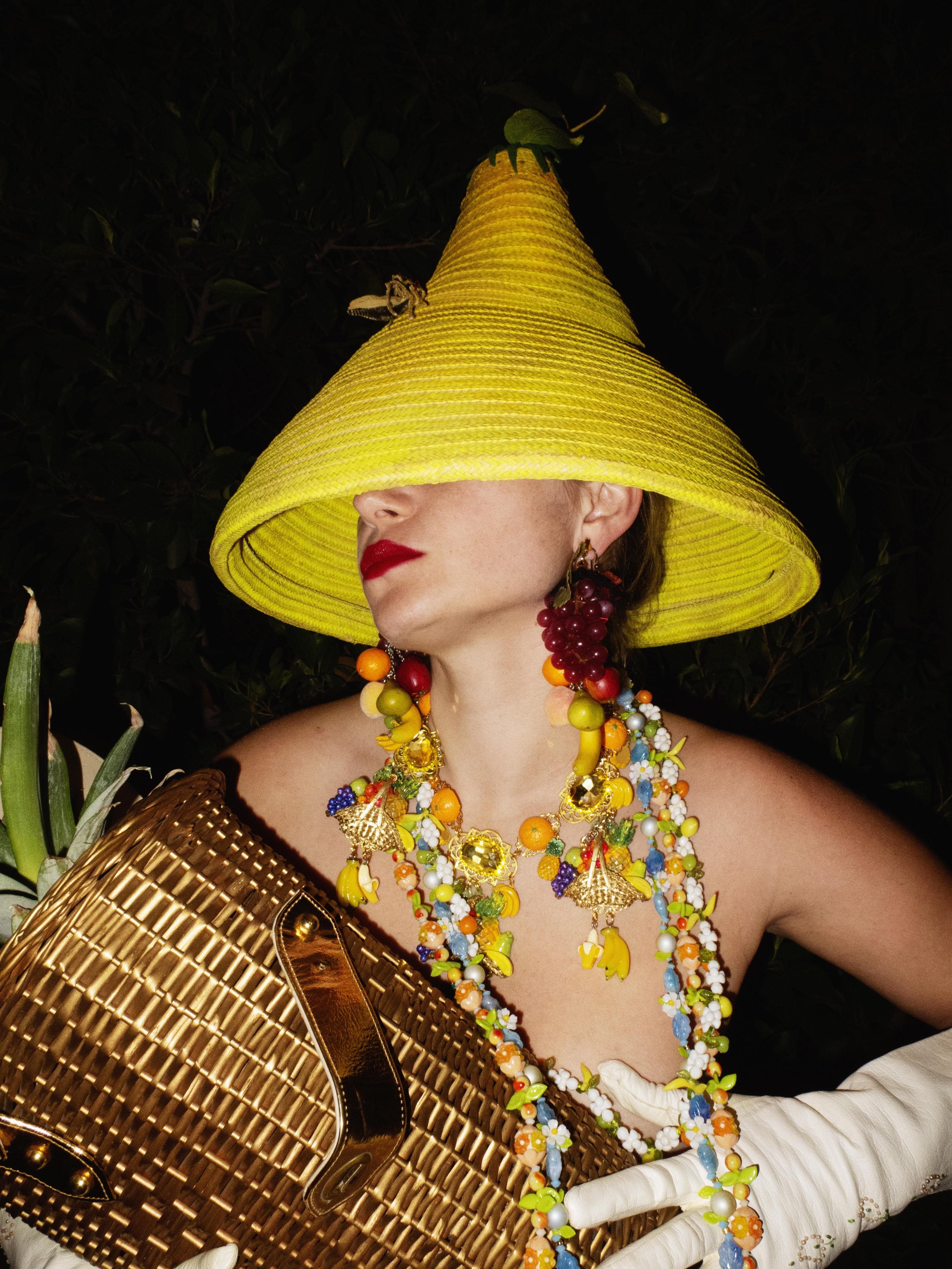 Photo: Courtesy of Haile Lidow“Keeping track of more than 5,000 pieces of clothing and accessories could make anyone crazy. Add in a global pandemic and making a short film, it's safe to say that being a 'Basket Case' may be more than just my Halloween costume this year! My fruity state of mind and this newly-restored Bill Cunningham headpiece led me to get naked in my garden and throw on a cornucopia of fruity accessories.