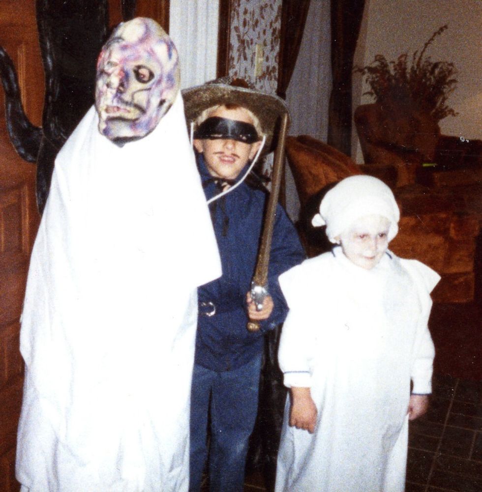 "Halloween is my favorite holiday since as long as I can remember. It's very hard to narrow down one favorite look, so I'm going to have to nominate three. I was a funny, imaginative kid and a prepackaged superhero or goblin costume was never an option for me. When I was 4 I wanted to be a bag of flour—I have no idea why. Although the photos make me look like I'm dressed as a run-of-the mill ghost, my back had a giant Gold Medal Flour emblem on it. Maybe it was a hybrid costume, I don't know. When I was 5 years old I was a Kentucky Fried Chicken "chef" complete with brand paraphernalia and a name tag. I remember I even got a tour of a real KFC for my character study research. As an adult my favorite was last year when I was a good mouse gone bad in a goth Mickey Mouse getup. My friend Liza Dare Wenger made my ears out of black rosettes and everything else was from my own closet. This year sadly I will be at a rehearsal dinner for my friend's wedding in Connecticut. The dress code is head-to-toe black. I, of course, am wearing a pumpkin-colored Calvin Klein collection suit, because you gotta break the rules every now and then, especially on Halloween!"