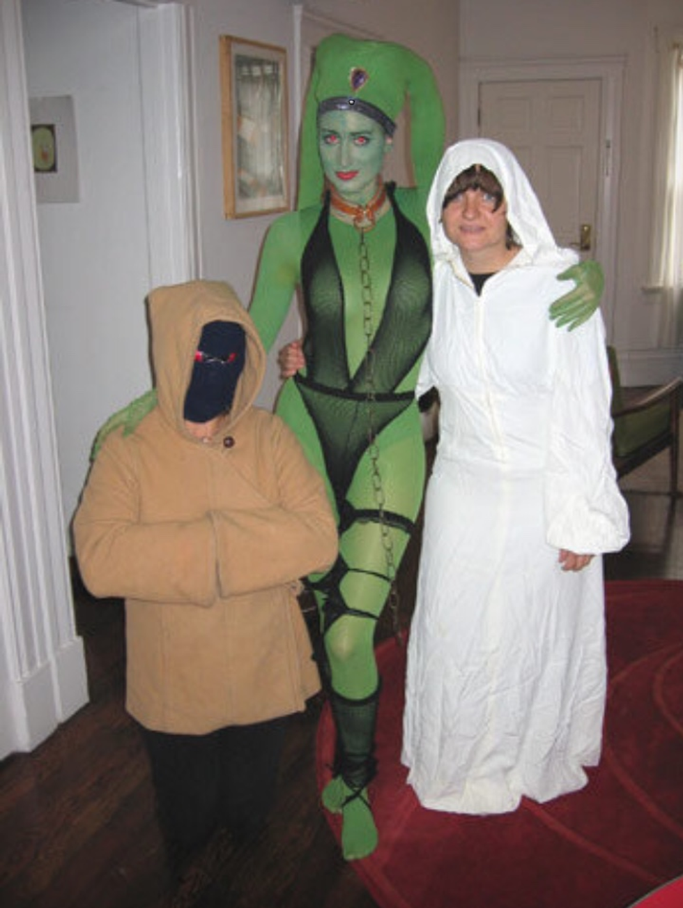 "My Oola costume (a character seen in Jabba the Hutt's throne room in Return of the Jedi) is definitely the Halloween costume that I remember most. It took weeks of planning and several hours to put on. I dyed the hose, leotard and gloves green and found face paint in the same shade and painted every inch of my face and neck—it was so weird!! My sister (not pictured) actually made the collar out of clay and painted it gold. We had an entire day of costume prep together—pretty much one of the most fun days of my life!"