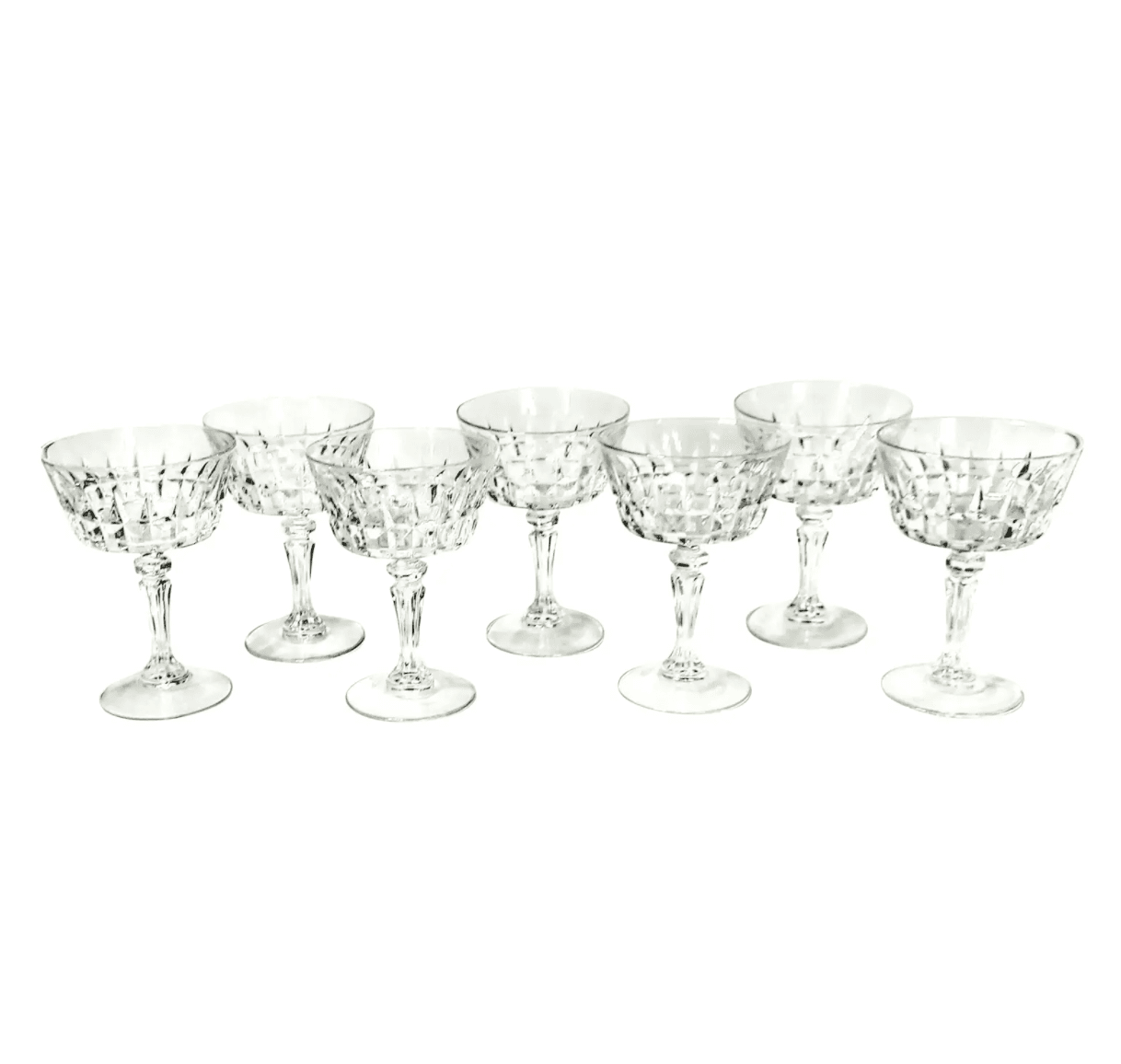 Vintage 40s Cut Crystal Champagne Coupes, Set of 7