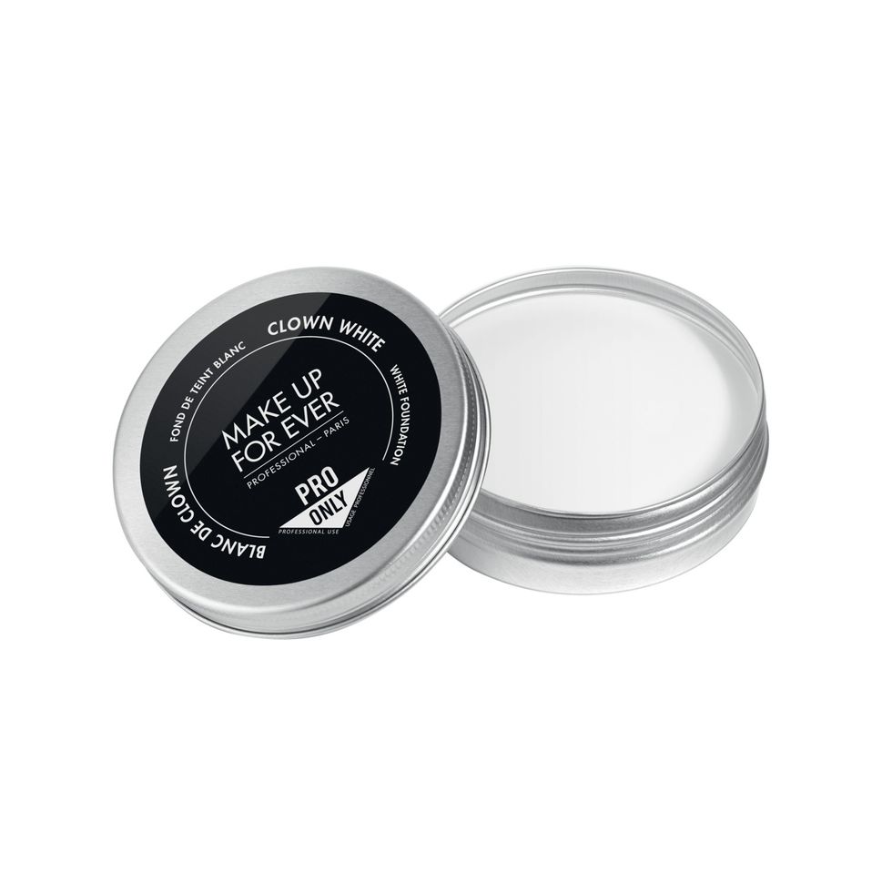 “First, mix a white cream foundation like Clown White with a regular foundation to achieve Marie Antoinette’s pale skin. Next, highlight with Clown White in the center of the face and under the eyes. Apply a few layers of HD Microfinish Powder on top. Also, white-out eyelashes using Clown White, using Artisan Brush #272.