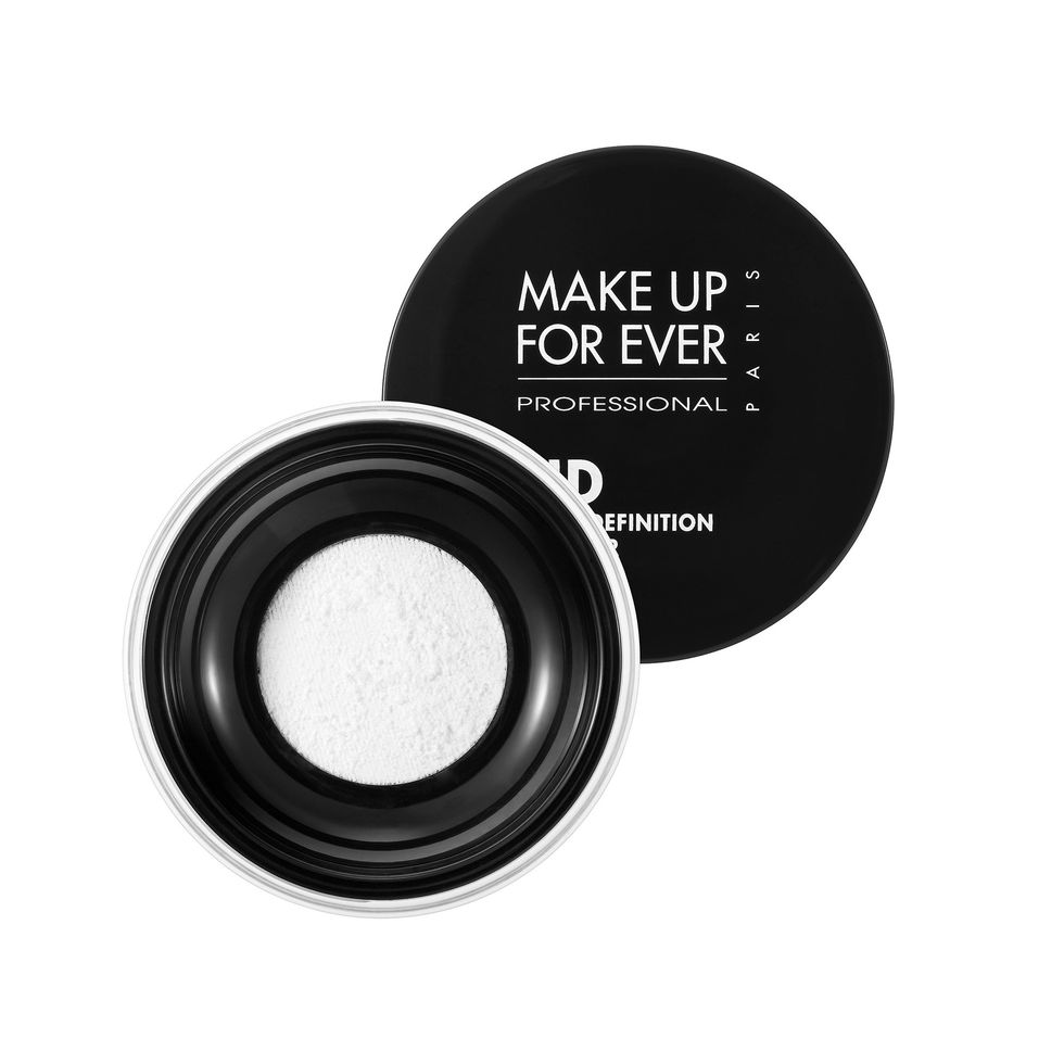 “First, apply Ultra HD Stick Foundation with a Beauty Blender for an opaque finish with a dewy glow. Next, brush on HD Blush 310 high on the cheeks, almost underneath the eyes, for a blush look of the times. For an at-home brow cover, apply MAKE UP FOR EVER Full Cover concealer directly to the eyebrows, then back-comb with a spooley brush and then back up to coat brows.
