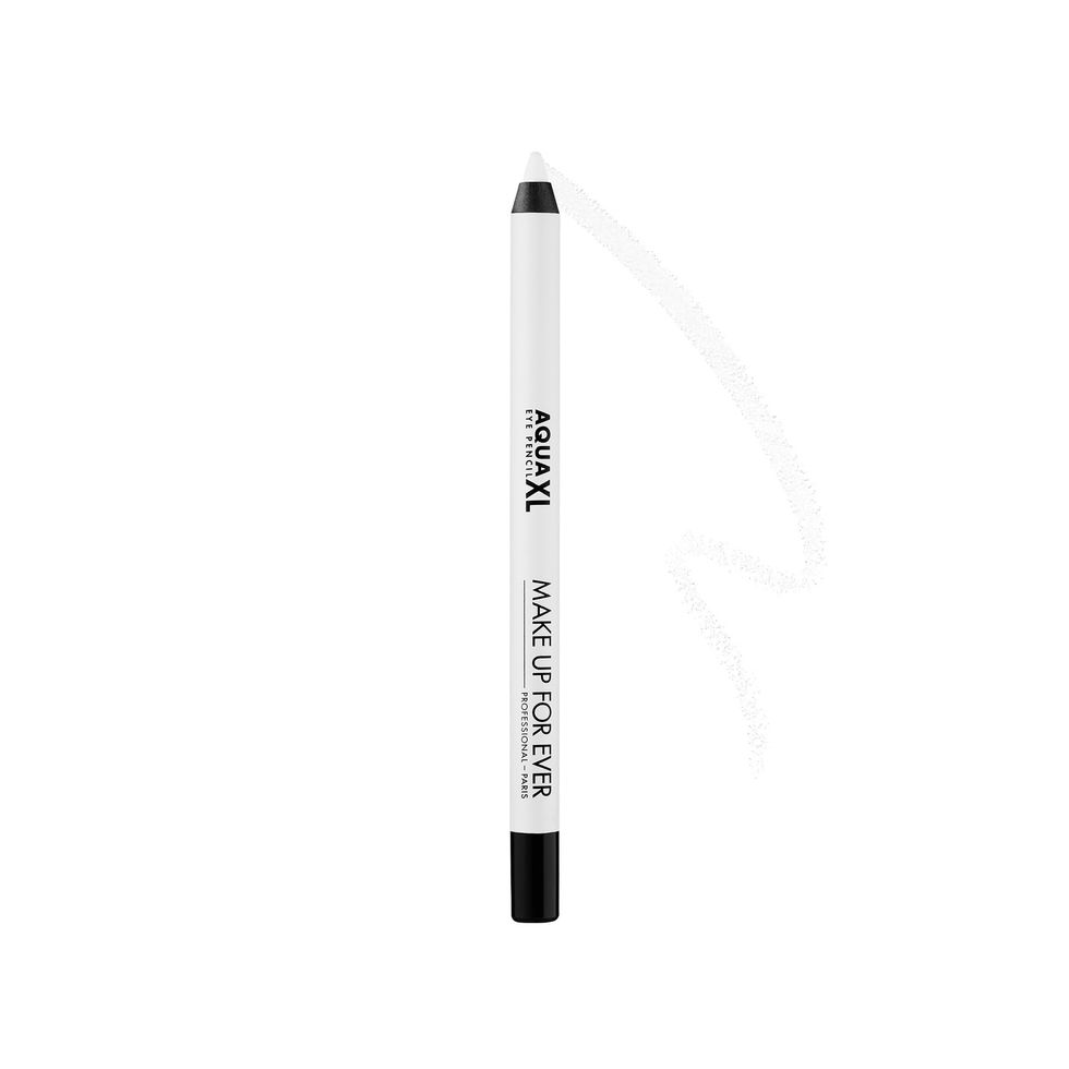 “Use Aqua Black and a thin-point eyeliner brush like Artisan Brush 250 to ‘cut the crease’ or draw eyeliner positioned in the crease of the eye. Next, use Aqua XL in M-16 to fill the lid with white under the crease and down to the lash line. Then, apply the same white liner to the lower waterline.