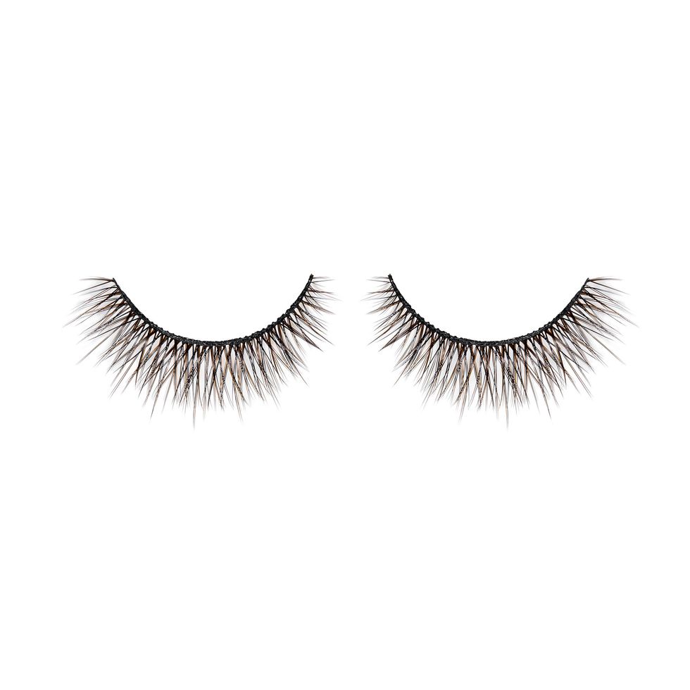 “Using individual lashes, apply 3 clusters to the bottom lashes, toward the outer corner. Last, apply Artist Rouge C-103 for a creamy beige lip. To lighten a lipstick at home, add a small amount of concealer and mix on the lips. Since this look doesn’t contain a lot of blush, if you’re feeling washed out, take a light foundation like Water Blend and tap throughout the cheeks to finish.”